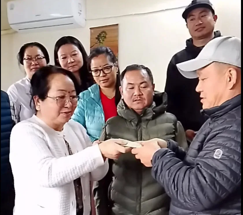 उनीहरुले छोराबाट प्राप्त सहयोग रकम कोषाध्यक्ष अरुण सिप्तुङ्खालाई हस्तान्तरण गरे ।