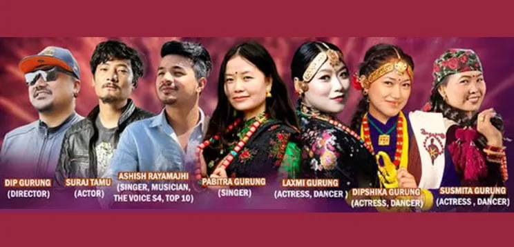 कार्यक्रमका लागि निर्देशक दिप गुरुङ, भिनेता सुरज तमु, गायिका पवित्र गुरुङ, नायिका एवं डान्सरहरु लक्ष्मी गुरुङ, दिपशिखा गुरुङ र सुस्मिता गुरुङ छन् । साथमा गायक ताथ संगीतकार आशीष रायमाझी कार्यक्रममा सहभागी हुने आयोजकले जनाएको छ ।