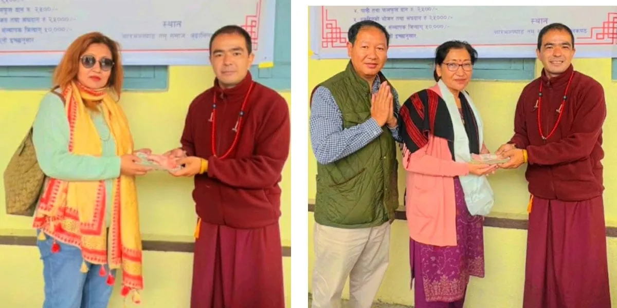 काठमाडौं । व्यवसायी तथा समाजसेवी विजय गुरुङ र लक्ष्मी गुरुङले १/१ लाख रुपैयाँ भूमिदान सहयोग गरेका छन् ।
