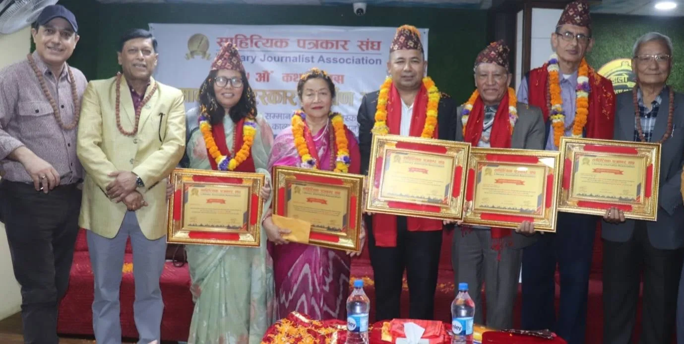 काठमाडौं । साहित्यिक पत्रकार संघले ४ कविलाई ‘व्यथित काव्य सम्मान’ प्रदान गरेको छ । बिहीबार चैत १९ गते काठमाडौंमा विशेष समारोह आयोजना गरी उनीहरुलाई सम्मान गरिएको हो । कविहरूमा विमला तुम्खेवा र मीनकुमार नवोदितलाई ‘व्यथित काव्य सम्मान २०८२’ सम्मान र ‘व्यथित काव्य डायस्पोरा सम्मान २०८२’ कविहरू लालगोपाल सुवेदी र दीपा राई पुन (अमेरिका)लाई दिइएको छ ।
