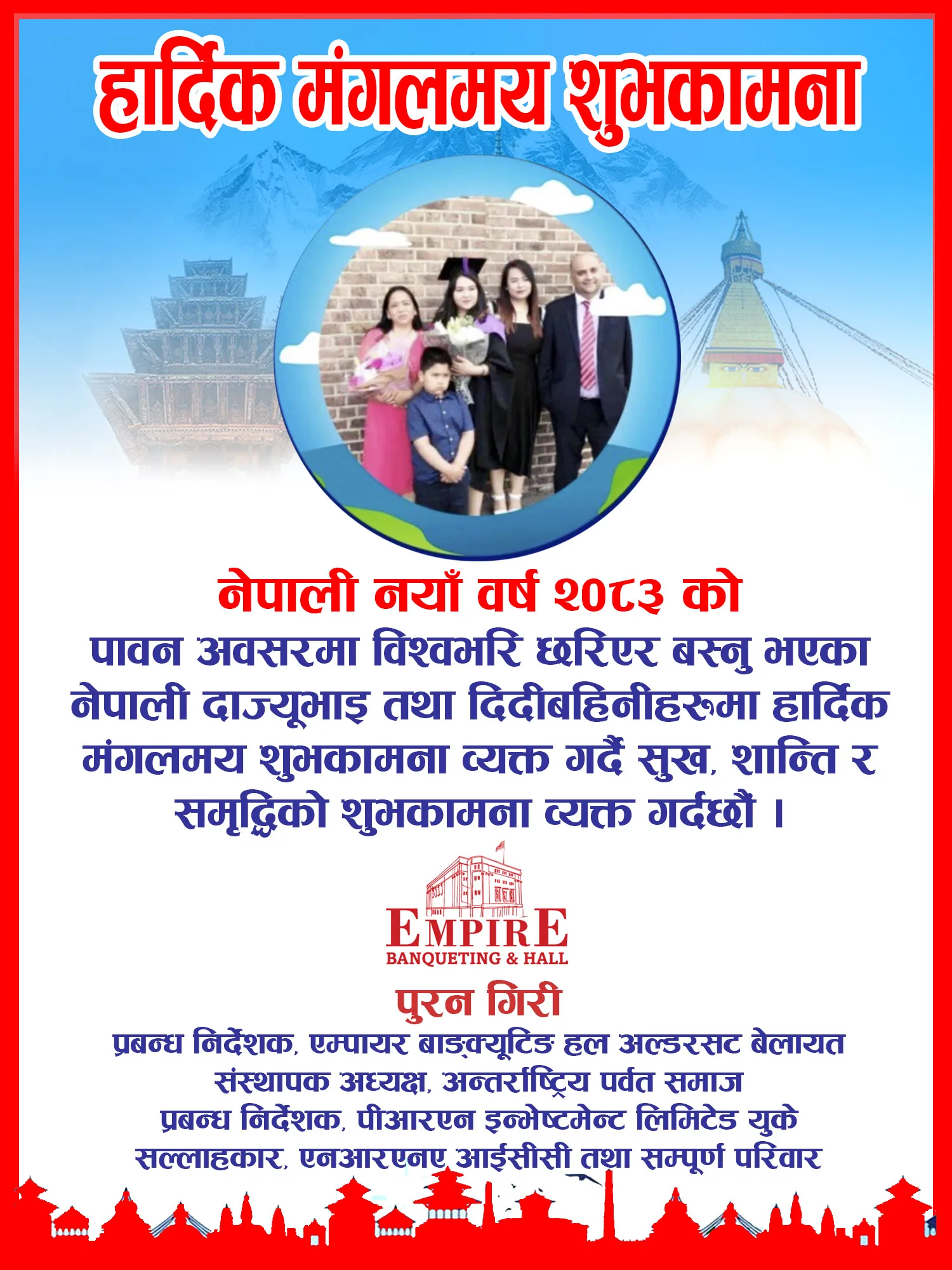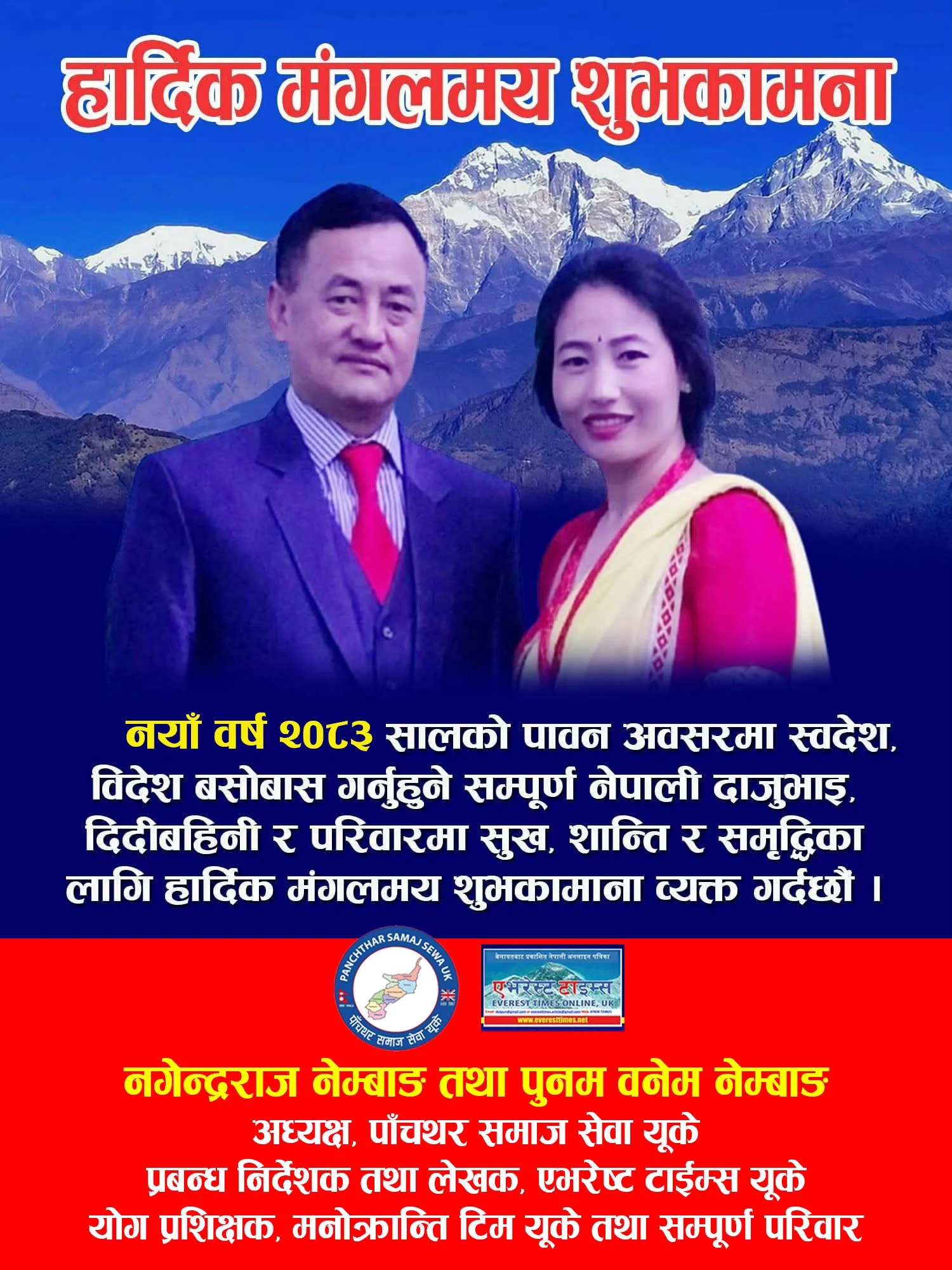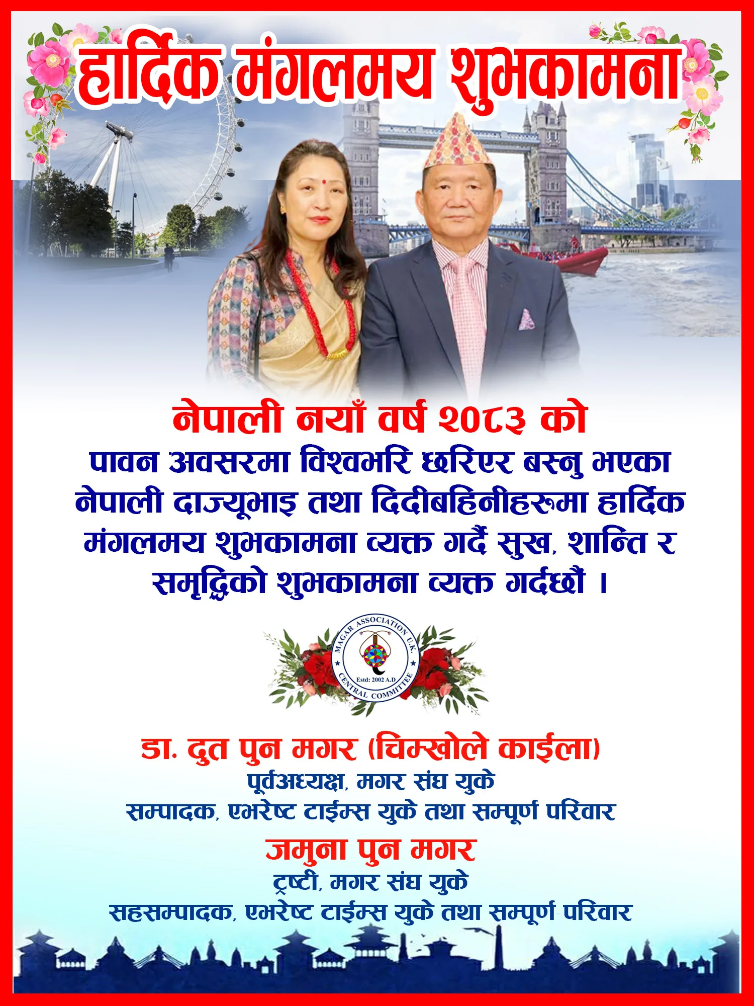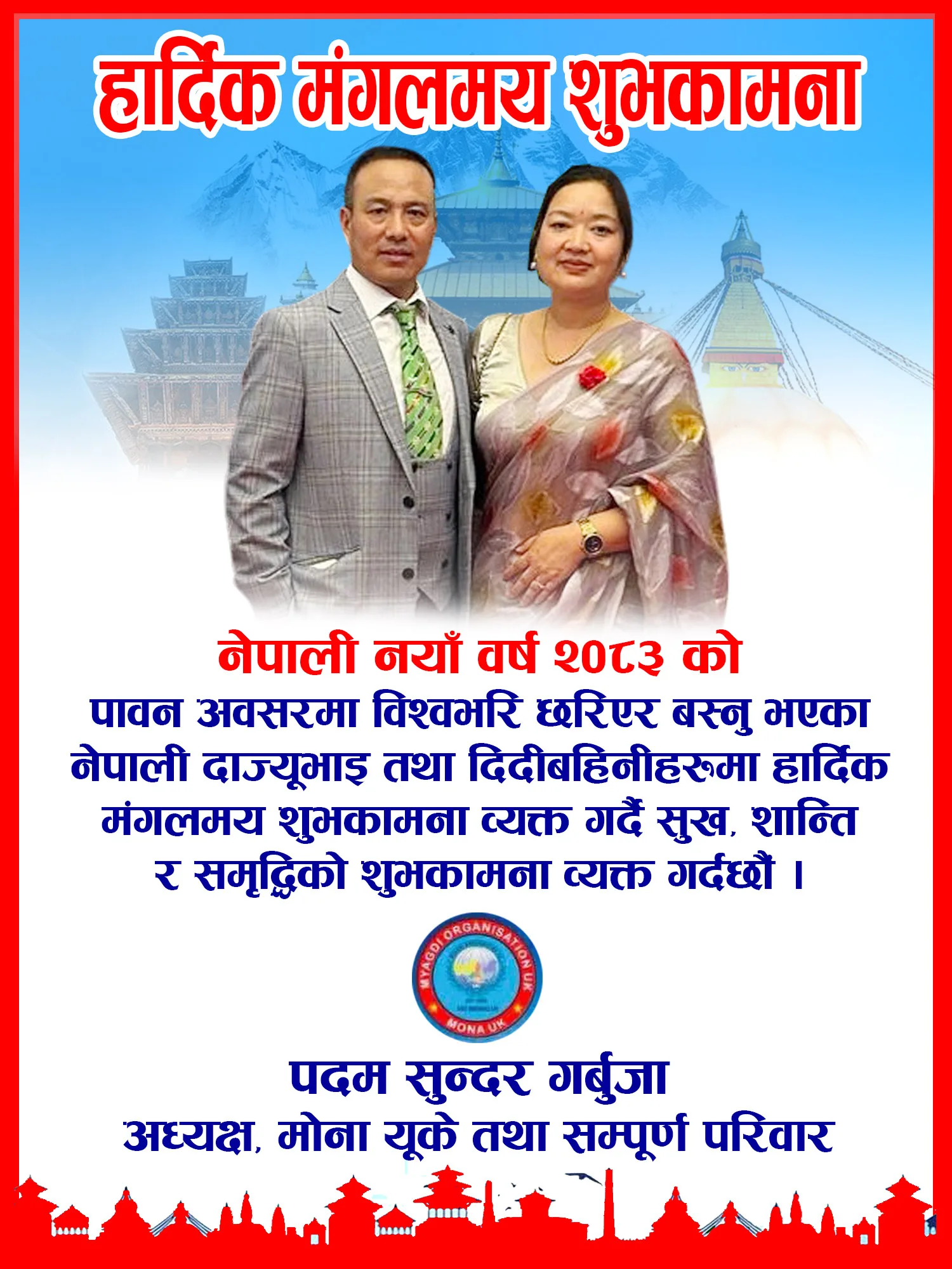 नयाँ वर्ष २०८३ को हार्दिक मंगलमय शुभकामना