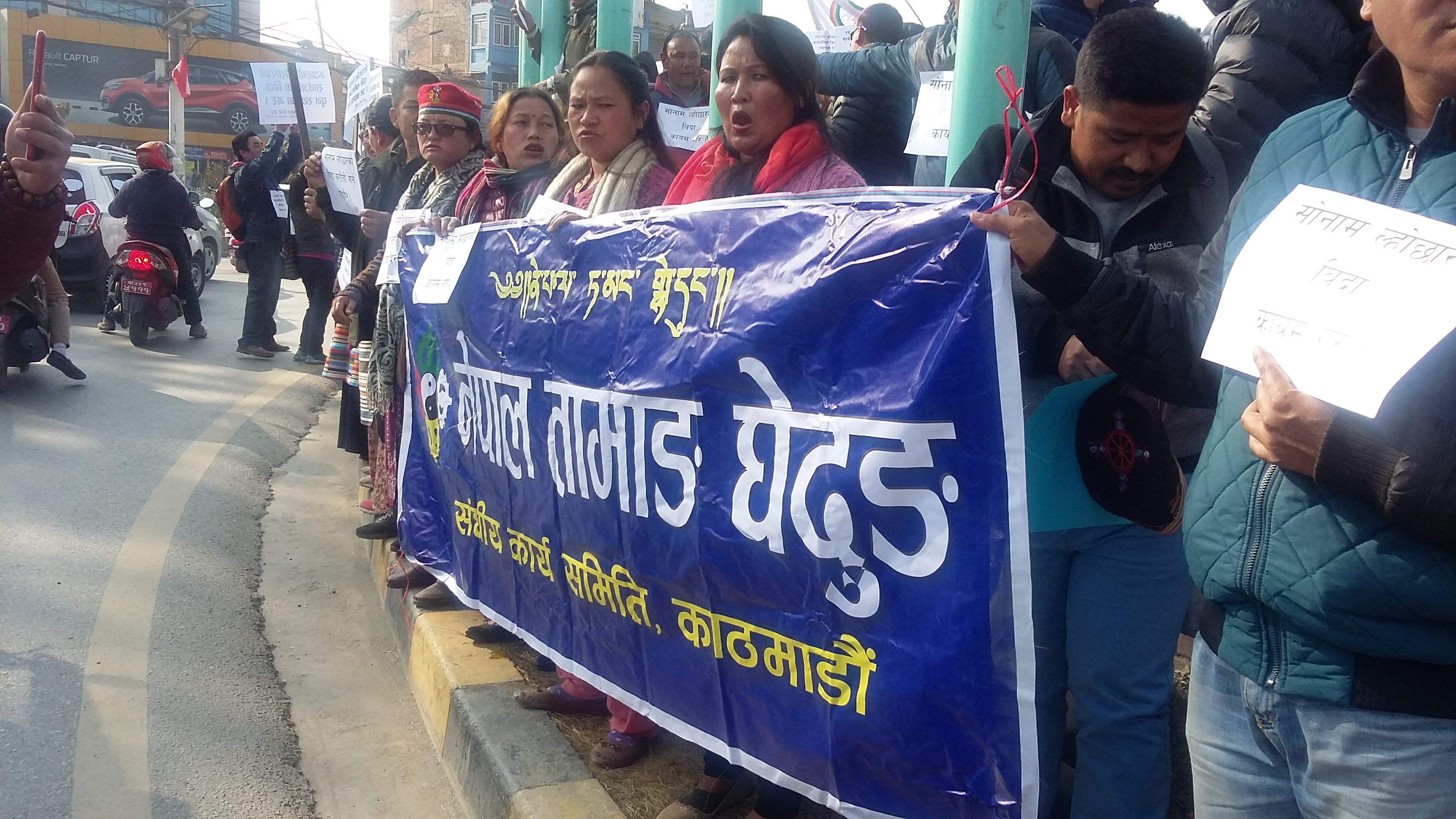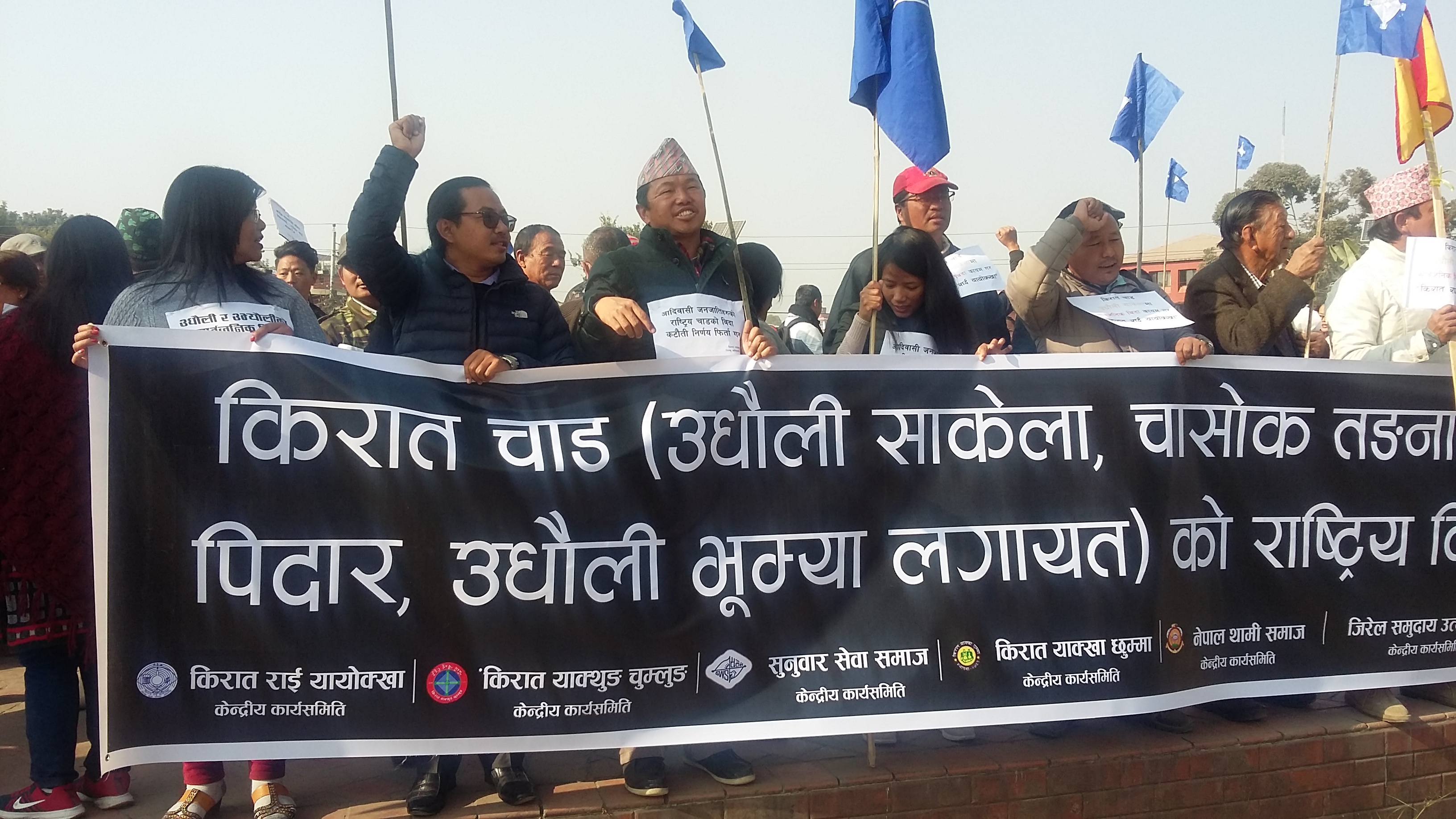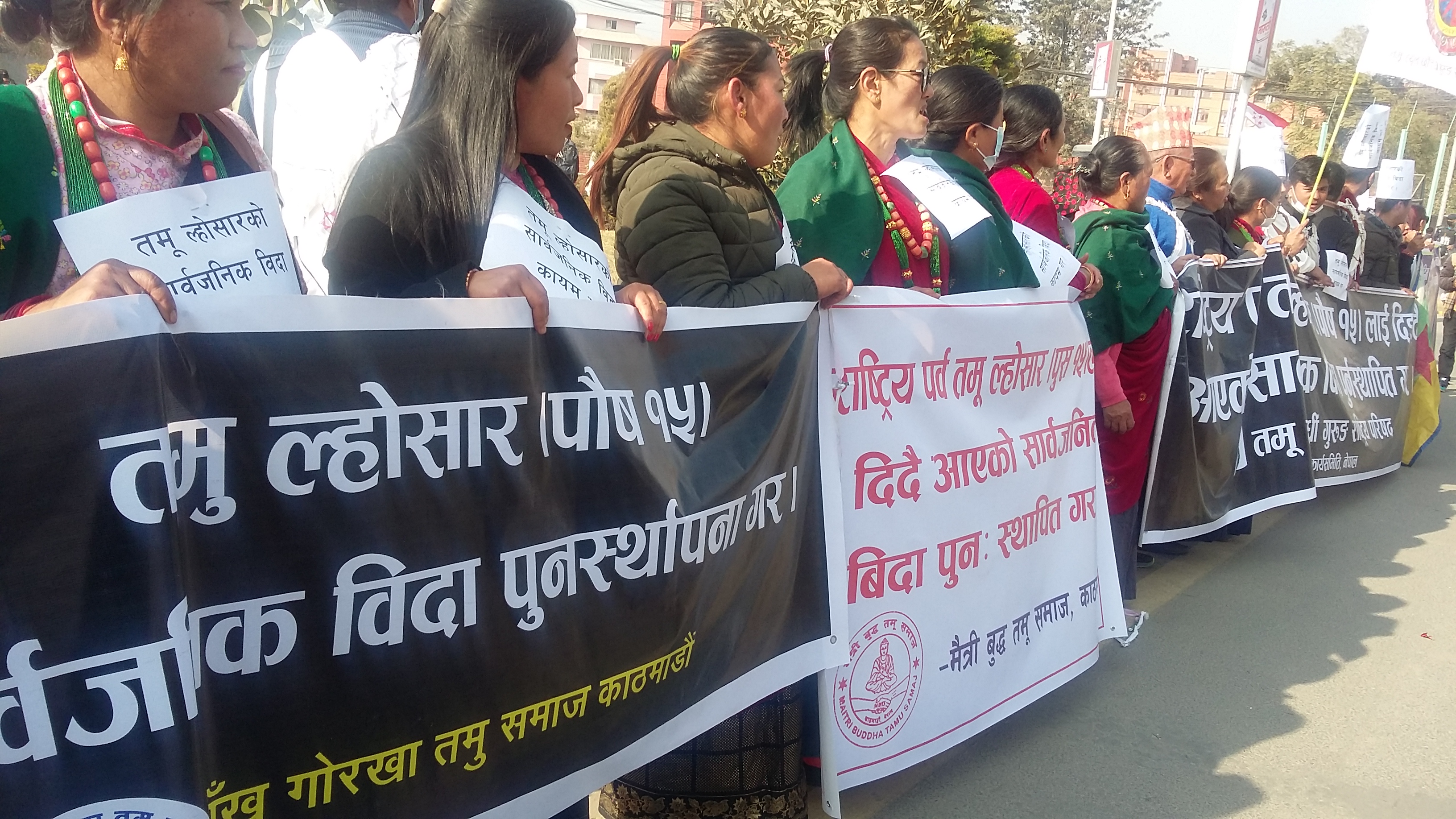 गुरुङ, तामाङ, शर्पा समुदायको तमु, सोनाम, ग्याल्बो ल्होछार, किरात समुदायको चासोक तङनाम, उधौली, उभौली, मगरलगायतका माघी पर्व, माघे संक्रान्तिको सार्वजनिक बिदा कटौतीको निर्णय फिर्ता गर्नुपर्नेजस्ता प्लेकार्ड, जातीय संस्थाहरुको झन्डा, व्यानरसहित कार्यक्रममा सहभागी भएका थिए । विरोध कार्यक्रमपछिको कोणसभामा वक्ताहरुले निर्धनिरपेक्ष मुलुकमा आफ्ना समुदायको चाडपर्वको बिदा कटौती गरेर राज्यले सांस्कृतिक विभेद गरेको आरोप लगाए । उनीहरुले सरकारले बिदा कटौतीको निर्णय फिर्ता नलिएसम्म आन्दोलन जारी राख्ने समेत चेतावनी दिए ।