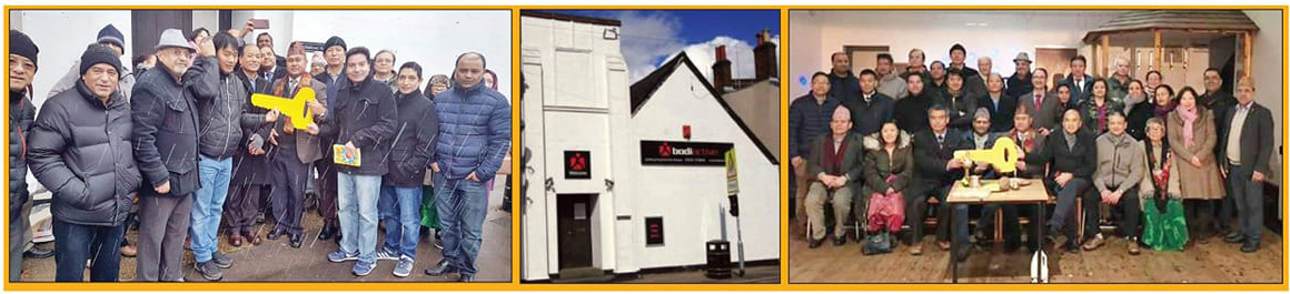 सन् २०१६ मा भाडामा मन्दिर लिइयो र निरन्तरता दिइने अवस्थामा एक च्यारिटी प्रोगाम राखियो, जसमा अलि फराकिलो दायरामा गन्यमान्य व्यक्तिहरु एवं संघसस्थाले ज्यादै अभिरुचि दिएर करिब ५३ हजार पाउन्ड सहयोग गर्ने प्रतिबद्धता लिइयो । यसरी रकम संकलन गर्ने प्रतिबद्धता भएको तर रकम उठाउन भने खासगरी भवनकै आवश्यकता भएको महसुस विभिन्न व्यापारीवर्ग, सामाजिक अभियन्ता र कार्यकारी सदस्यहरुले महसुस गरे । भवन खोज्नेक्रममा हर्कबहादुर गुरुङ (उपाध्यक्ष, बुद्धिष्ट कम्युनिटी सेन्टर (बिसीसी), अध्यक्ष, गोर्खा नेपाल टेनिस संघ पाएपछि यसमा ठूलो अभियान चलाउन सफल भइयो र रकम जम्मा हुन थाल्यो ।