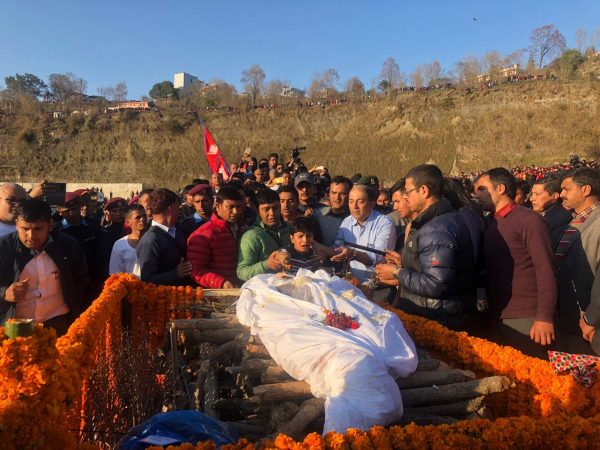 पोखरा । हेलिकोप्टर दुर्घटनामा निधन भएका संस्कृति, पर्यटन तथा नागरिक उड्ययनमन्त्री रविन्द्र अधिकारीको गृहनगर पोखरामा अन्त्येष्टि गरिएको छ । उनको राजकीय सम्मानका साथ अन्त्येष्टि गरिएको हो ।