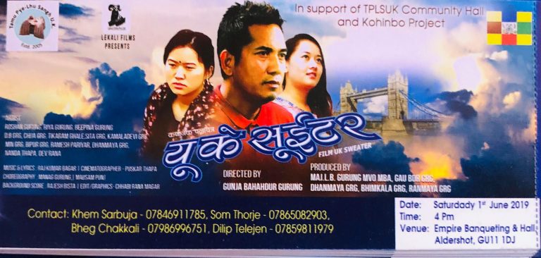मिलन तमु अल्डरसट । गुरुङ चलचित्र ‘यूके सूईटर’ अल्डरसटको एम्पायर हलमा प्रदर्शन हुने भएको छ । तमु प्ये ल्हु संघ युके कम्युनिटी हल र कोईबो परियोजना सहयोगार्थ आउँदो शनिबार १ जुनका दिन दिउँसो ४ बजे