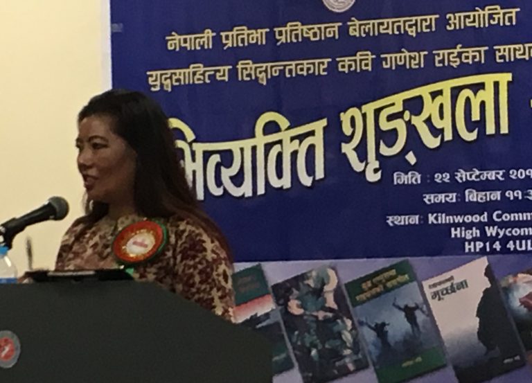 बेलायत । नेपाली प्रतिभा प्रतिष्ठान बेलायतले बाह्रौं अभिव्याक्ति शृङ्खलाको लागि गीतकार तथा कवि जानु काम्बाङलाई मञ्च प्रदान गर्ने भएको छ । अध्यक्ष दिपा लिम्बू राईको अध्यक्षतामा बसेको बैठकले सस्ंथाको बाहौं अभिव्यक्ति शृङ्खलाको लागि जानु काम्बाङलाई