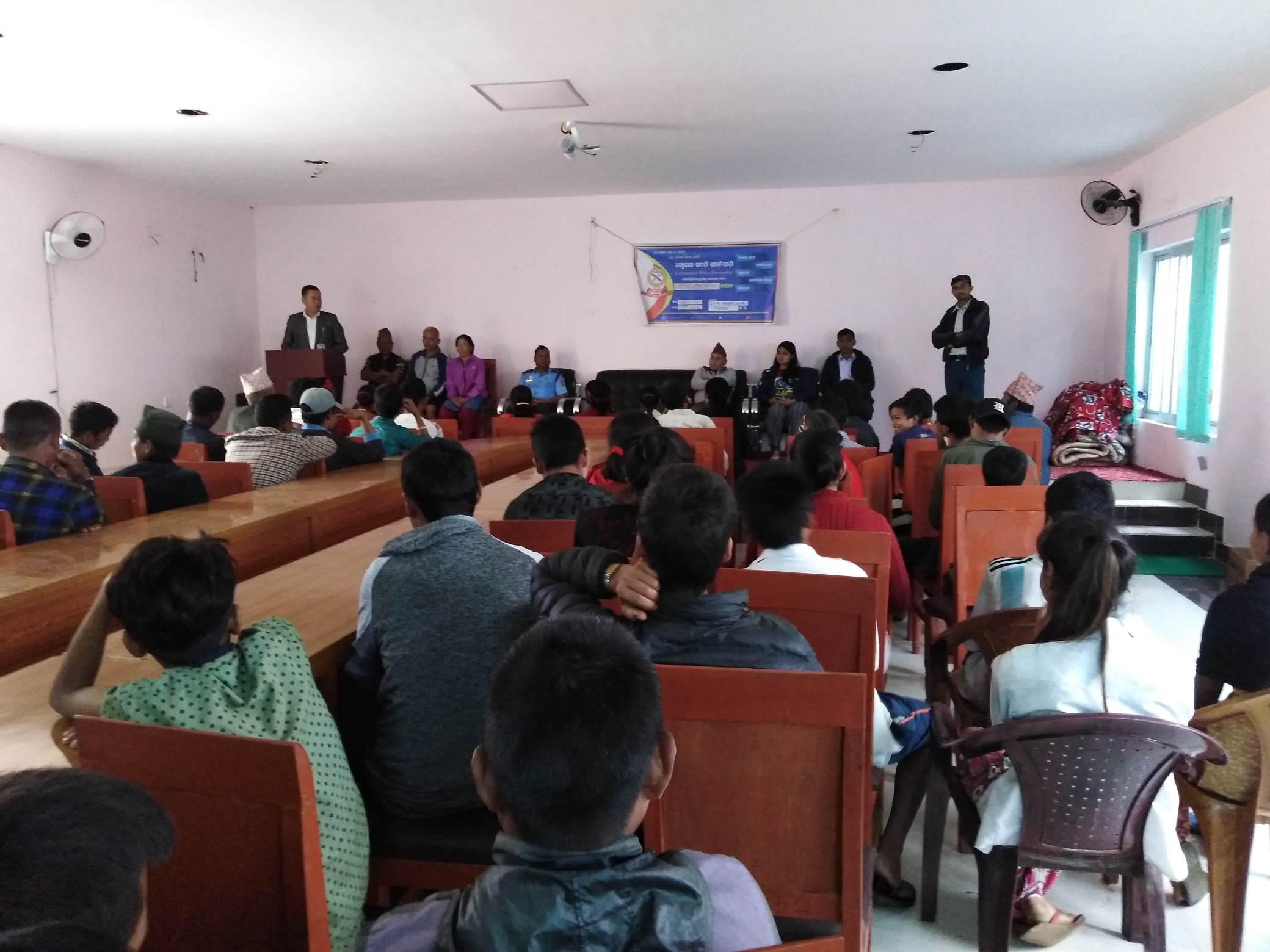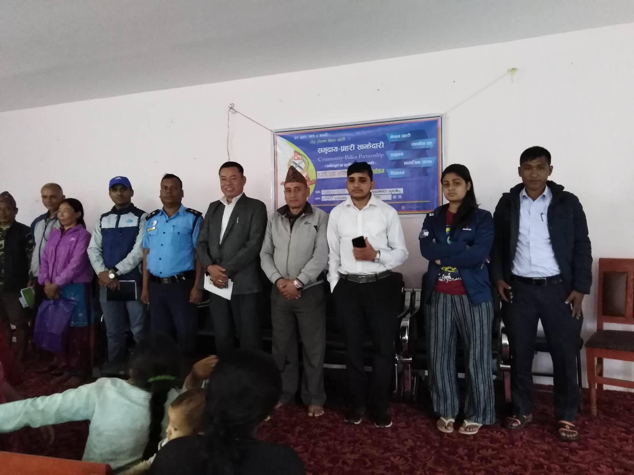 गाउँपालिका अध्यक्ष तामाङको प्रमुख आतिथ्यमा भएको कार्यक्रममा वडा नम्बर ३ का महिला समूह, प्रहरी, शिक्षक, कर्मचारी, बुद्धिजीवी लगायत करिब ८० जनाको उपस्थितिमा थियो ।