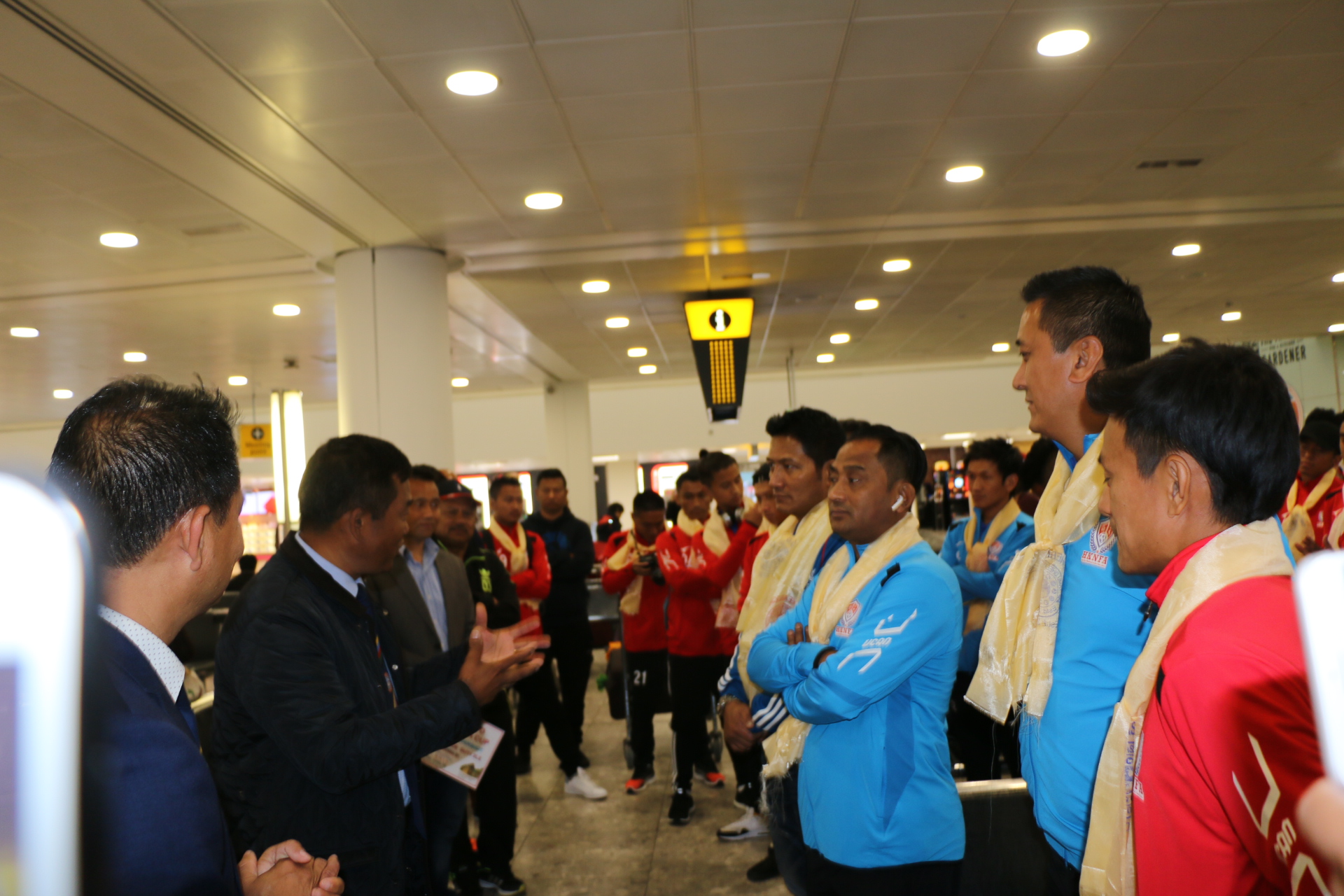 लन्डन । १६ औं गोर्खा कप फुटबलका लागि हङ्गकङ्गबाट १५ जना खेलाडीसहित १९ जनाको टिम बिहीबार बिहान लण्डन आइपुगेकाे छ । उनीहरुलाई बिहीबार बिहान ६ बजे हिथ्रो विमानस्थलमा तमुधिं युकेका उपाध्यक्ष नन्दजङ्ग गुरुङ, गोर्खा कप फुटबल इभेन्ट इन्चार्ज तथा सहारा एफसीका चेयरमेन ले रि कुसाङ्ग गुरुङ, तमुधिं युकेका सल्लाहकार महेश गुरुङले हङ्गकङ्ग नेपाली फुटबल टिमका मेनेजर राजीव हिराचनलगायत टिमलाई स्वागत गरेका थिए ।
