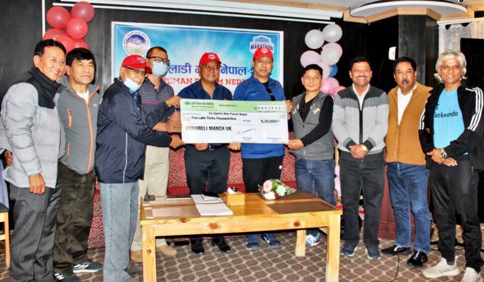 पोखरा फागुन २१ । पोखरा म्याराथनका लागि पोखरेली मञ्च यूकेले ५ लाख ३० हजार सहयोग हस्तान्तरण गरेको छ ।