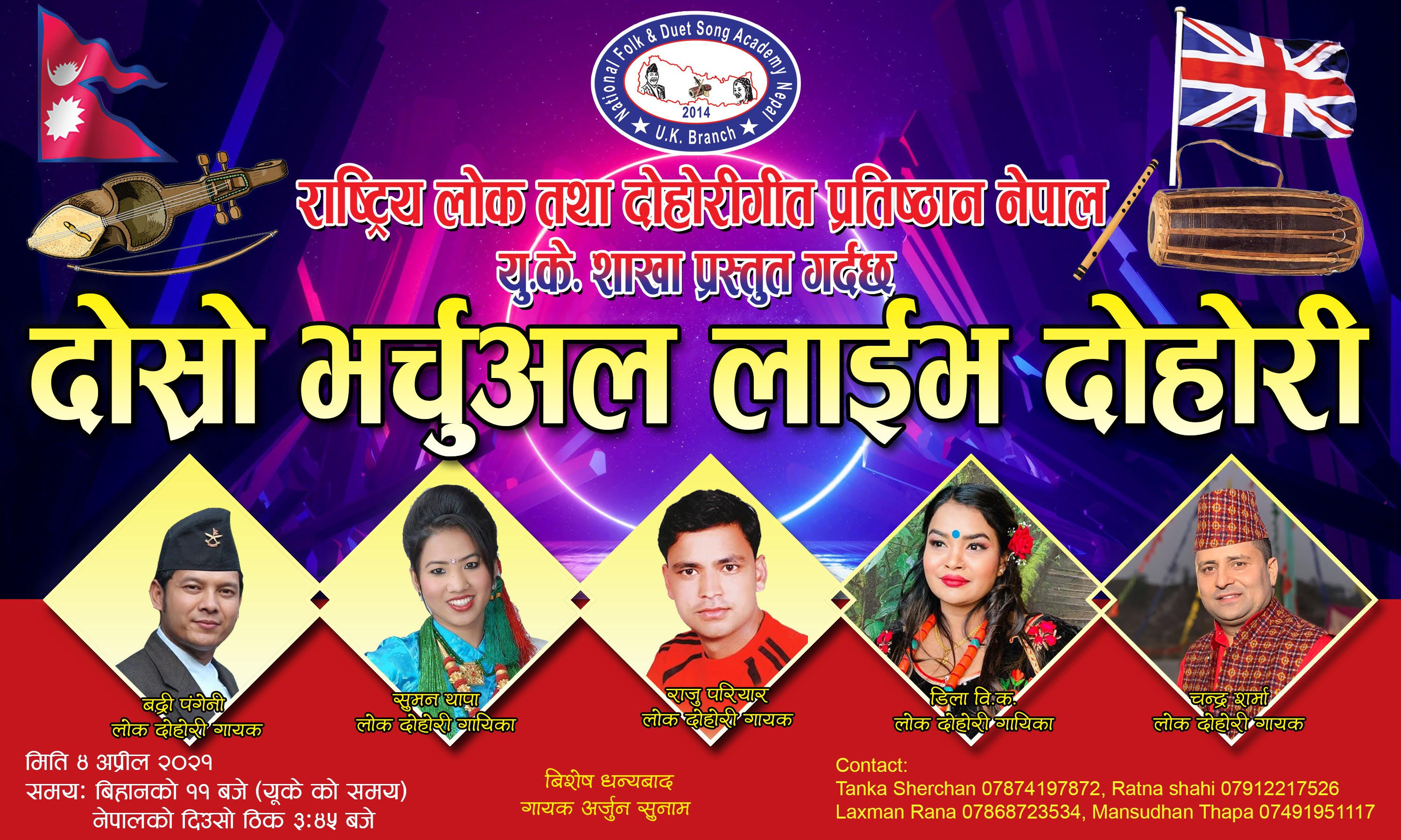 बेलायत चैत ७ । राष्ट्रिय लोक तथा दोहोरी गीत प्रतिष्ठान नेपाल यूके शाखाले दोस्रो भर्चुअल लाईभ दोहोरी गर्ने भएको छ ।