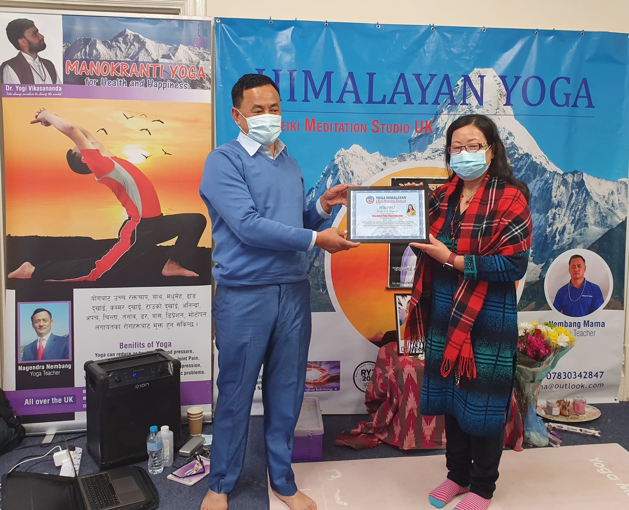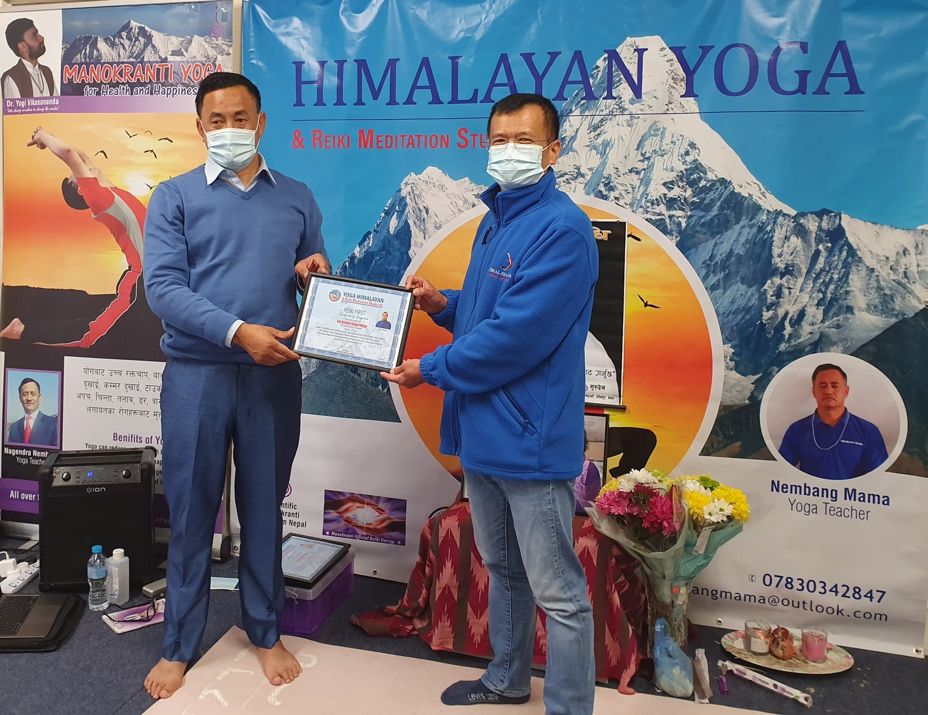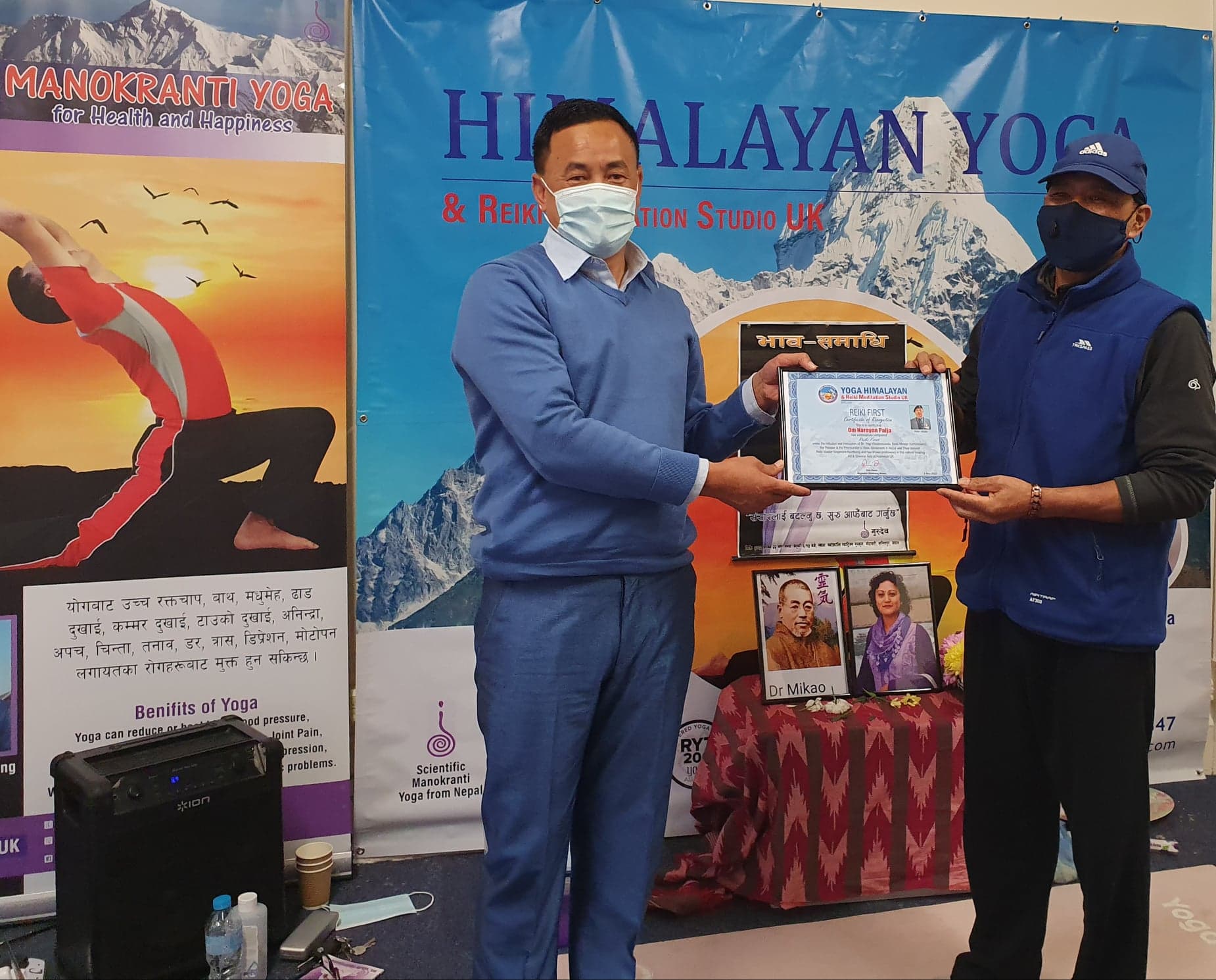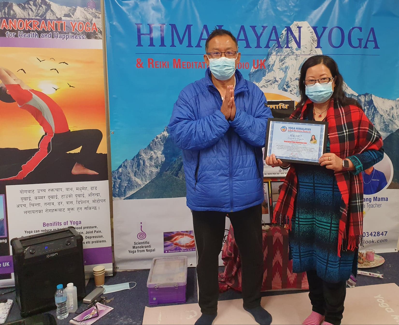 रेकी दीक्षा कार्यक्रमको अन्त्यमा सबै सहभागीको प्रतिनिधित्व गर्दै खड्गजङ आङ्बुहाङ लिम्बुले रेकी मास्टर नेम्वाङलाई धन्यवाद ज्ञापन गरेका थिए । रेकी हिलरहरुलाई रेकी प्रथमको प्रमाण पत्र पनि हिमालयन योगा एन्ड रेकी मेडिटेसन स्टुडियो यूकेले प्रदान गरे ।