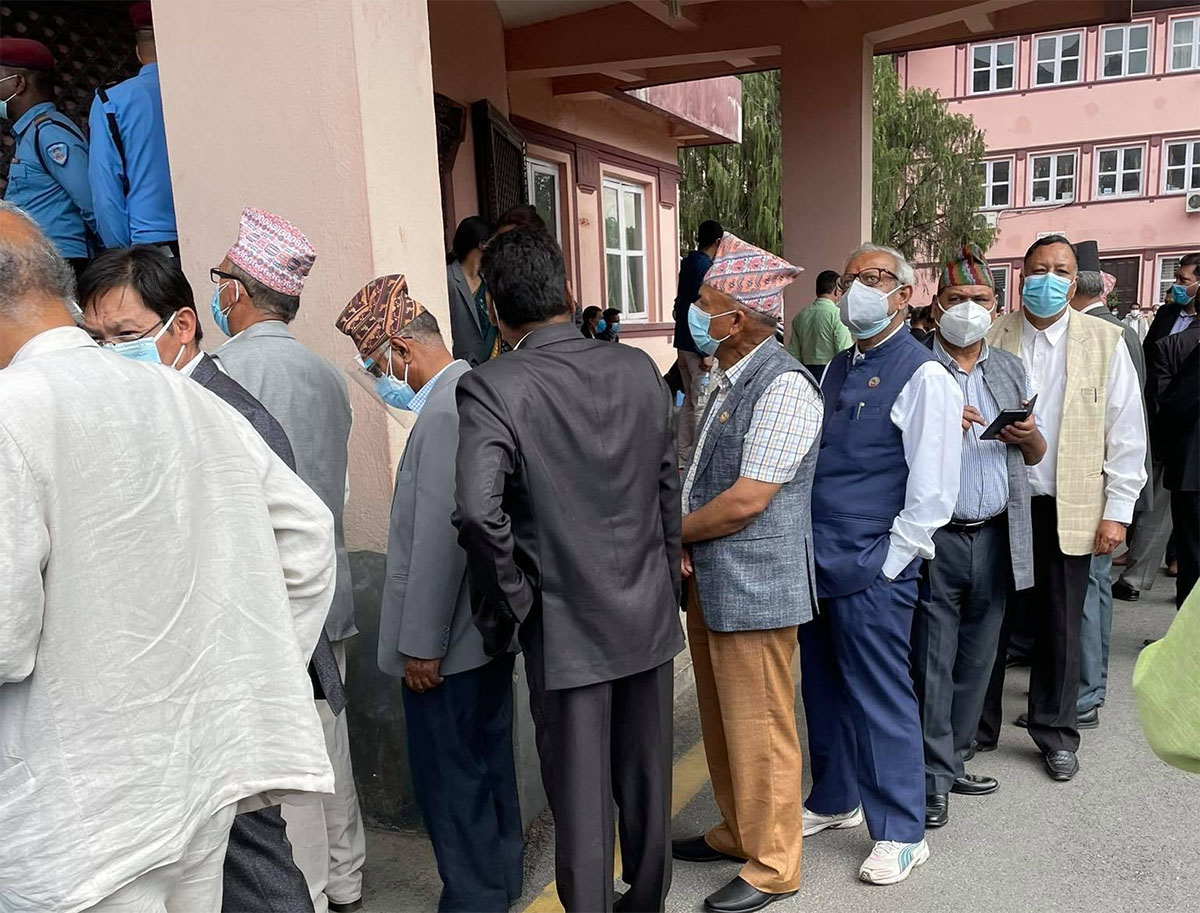 कांग्रेस सभापति देउवा, नेपाल(माओवादी केन्द्र)का अध्यक्ष पुष्पकमल दाहाल ‘प्रचण्ड’, नेकपा(एमाले)का नेता माधवकुमार नेपाल, जनता समाजवादी पार्टी नेपालका अध्यक्ष उपेन्द्र यादव र राष्ट्रिय जनमोर्चाका अध्यक्ष चित्रबहादुर केसीका नेतृत्वमा १४६ निवर्तमान सांसदले आज अपराह्न निवेदन दिएका हुन् । सर्वोच्च अदालतका संचार विज्ञ किशोर पौडेलले रीट दर्ता भएको र अहिले सनाखतको काम भइरहेको बताएका छन् ।