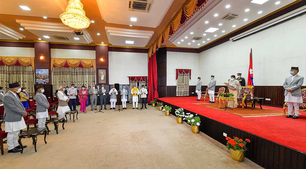 नवनियुक्त राज्यमन्त्रीले राष्ट्रपति भण्डारीका उपस्थितिमा प्रधानमन्त्री ओलीसमक्ष पद तथा गोपनीयताको शपथ लिए । नवनियुक्त मन्त्रीमा