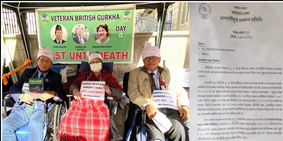 गोर्खा सत्याग्रह संयक्त संघर्ष समितिको आव्हानमा गोर्खाहरु बेलायती प्रधानमन्त्री कार्यालय अगाडि गत २१ जुलाइदेखि १७ दिनसम्म रिले अनसन शुरु गरेर हाल भोक हड्तालमा छन् । विगत ४ दिनदेखि भूपू गोर्खाहरु ज्ञानराज राई र धनबहादुर गुरुङ एवं गोर्खा एकल महिला पुष्पा राना घले भोक हड्तालमा बसेका हुन् ।