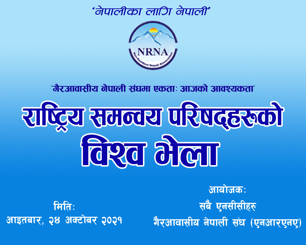 गैर आवासीय नेपाली सङ्घ राष्ट्रिय समन्वय परिषद्हरुको पहिलो ऐतिहासिक विश्व भेला भर्चुएल माध्यमबाट २४ अक्टोबर २०२१ मा सम्पन्न भएको छ। भेलामा संघका राष्ट्रिय समन्वय परिषद् (एनसीसी) हरुका निर्वाचन भएकामध्ये ८० प्रतिशत भन्दा बढी एनसीसी अध्यक्ष तथा पदाधिकारीहरुको सक्रिय सहभागिता रहेको थियो। पूर्व परराष्ट्र मन्त्री डा. प्रकाशशरण महत प्रमुख अतिथि रहनु भएको भेलामा संघका पूर्व अध्यक्ष तथा संरक्षक देवमान हिराचन, संघका सल्लाहकारहरु कुल आचार्य, विश्व आदर्श पण्डित, सोम सापकोटा, त्रिलोक गुरुङ, एसी शेर्पा, हरिबोल भण्डारी, केन्द्रीय उपाध्यक्षहरू सोनाम लामा तथा मन केसी, सचिव आर के शर्मा, सह कोषाध्यक्ष लोक दाहाल, महिला संयोजक भोमा लिम्बू, युरोप क्षेत्रीय संयोजक नारायण आचार्य, अफ्रिका क्षेत्रीय संयोजक रोशन थापा, युवा संयोजक हिमाल गुरुङ, मध्यपूर्व युवा संयोजक राज रेग्मी, एनसीसी अमेरिकाका पूर्व सल्लाहकार डा. यादव पण्डित, विभिन्न एनसीसीका अध्यक्षहरु लगायतका वक्ताले सारगर्भित मन्तव्य राख्नु भएको थियो।