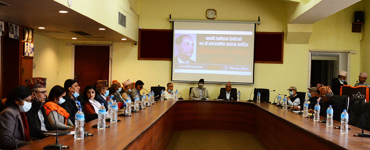 सदस्य सचिव प्रा. जगत्प्रसाद उपाध्यायले महाकवि देवकोटाको व्यक्तित्व र कृतित्वको विशद् चर्चा गर्नुहुँदै उहाँ नेपाली साहित्यका विशिष्ट र शिखर प्रतिभा भएको बताउनुभयो ।