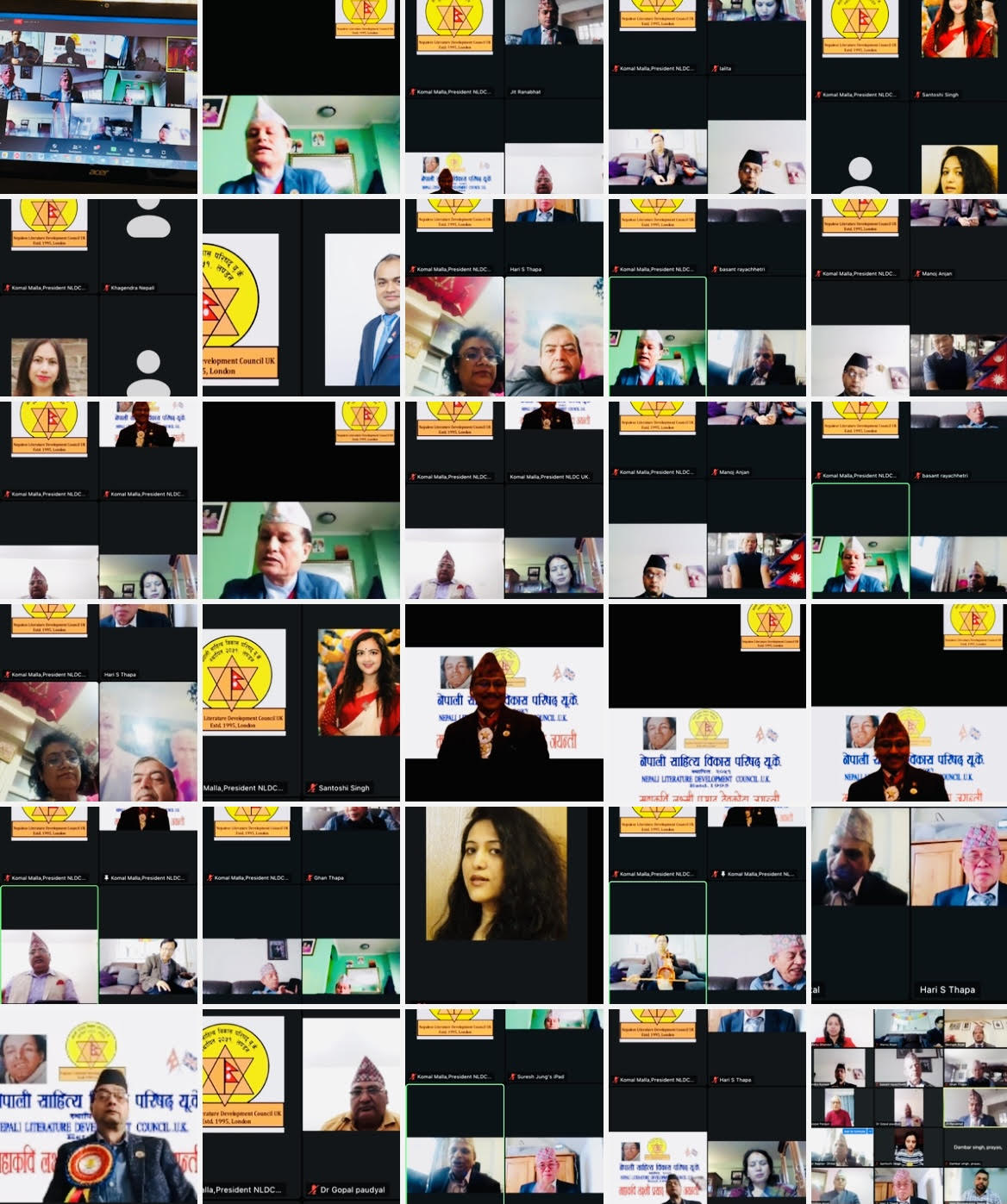 लन्डन ४ नोभेम्बर | बेलायतमा रहेका नेपालीहरूको सबै भन्दा जेठो साहित्यिक संस्था नेपाली साहित्य विकास परिषद् यूकेद्वारा ११३औं महाकवि देवकोटा जयन्ती प्रवचन, कविता वाचन, गीतसङ्गीत प्रस्तुति र पुस्तक विमोचन लगायतका कार्यक्रमहरूकासाथ भव्यरूपमा मनाइयो। बेलायत,नेपाल र भारत, यूएई का साहित्यकार, कवि, कलाकार,गायककार पत्रकार र साहित्य प्रेमी लगायतका सर्जकहरूको उत्साहवर्धक सहभागिता रहेको भर्चुअल साहित्यिक कार्यक्रमको उद्घाटन गर्नुहँदै प्रमुख अतिथि यती संस्थाका पूर्व अध्यक्ष तथा परिषद्का वरिष्ठ प्रमुख सल्लाहकार डा.राघव प्रसाद धिताल ओबिई ले महाकवि लक्ष्मी प्रसाद देवकोटा नेपालका अमूल्य निधि हुन् जस्ले भाषा साहित्यिको शिखर उच्च मात्र पारेनन् शिक्षा मन्त्री समेत भएर अन्तराष्ट्रीय स्तरमा नेपालको प्रतिनिधित्व समेत गरेर राष्ट्रको ख्याति र प्रभाव बढाएका थिए भन्नुभयो ।समारोहमा प्रमुख अतिथि डा. धितालले परिषद्की सहमहासचिव डा.सङ्गीता श्रेष्ठ ’स्वेच्छा’ द्वारा सम्पादित सहित्य र चित्रकलाको सङ्ग्रह ‘द हिमालयन सनराइज‘ पुस्तकको विमोचन गर्नुहुँदै लेखक सङ्गीता ’स्वेच्छा’ ले नेपाली साहित्य र चित्रकलालाई अंग्रेजी भाषामा सङ्ग्रहित गरी पुस्तक प्रकाशन गरेर नेपाली सिर्जनालाई अन्यभाषिहरूबीच पु-याउने अत्यन्त सराहनीय कार्य गरेकीछन भन्नुभयो ।