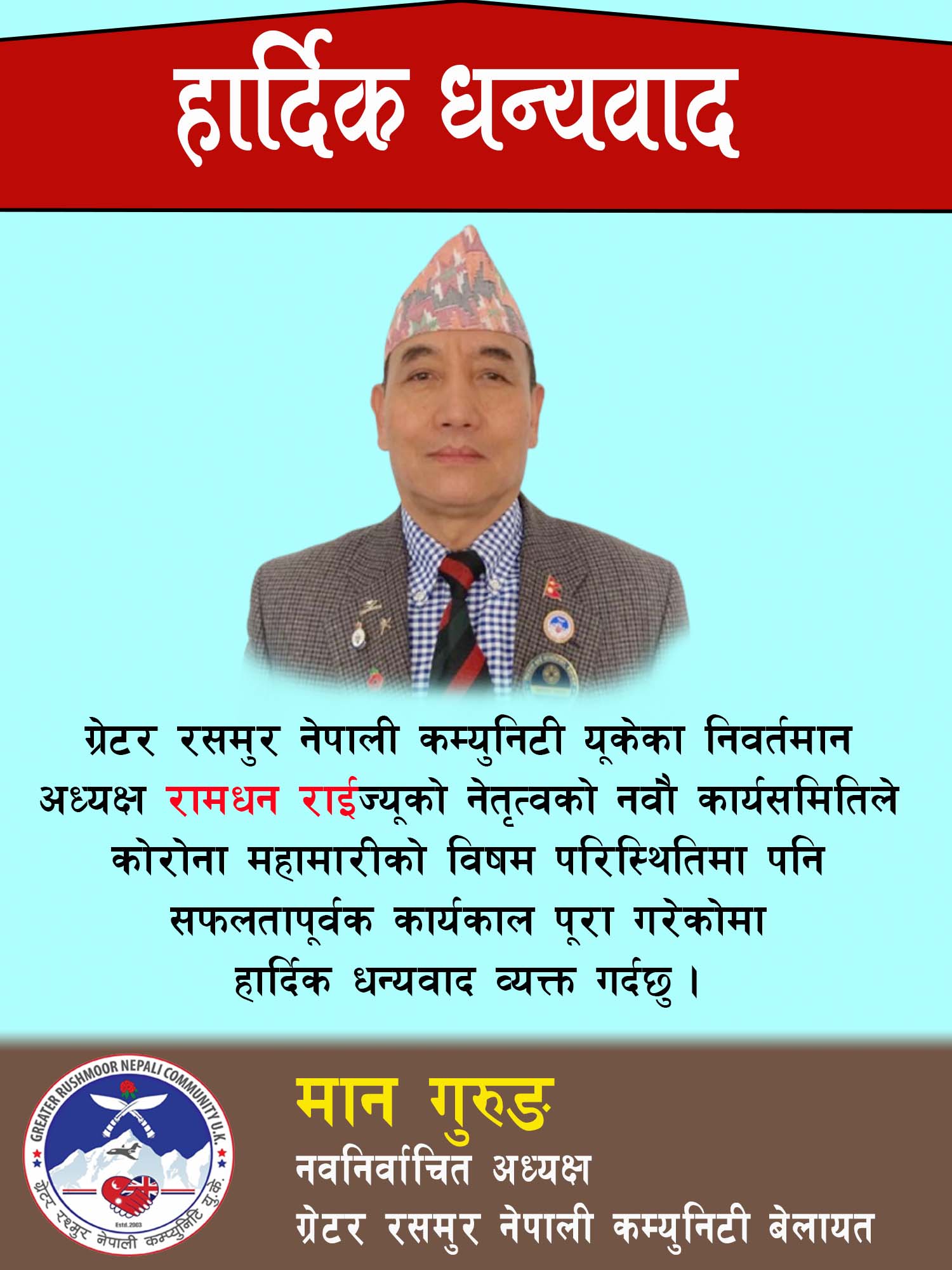हार्दिक धन्यवाद: रामधन राई