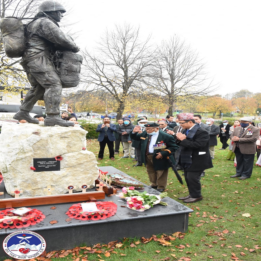 युद्धमा वीरगति प्राप्त गरेका सैनिकहरुको सम्झनामा आयोजित समारोह रिमेम्बरेन्स सन्डेमा बेलायतमा बसोवास गर्ने नेपालीहरुले श्रद्धाञ्जली अर्पण गरेका छन् ।