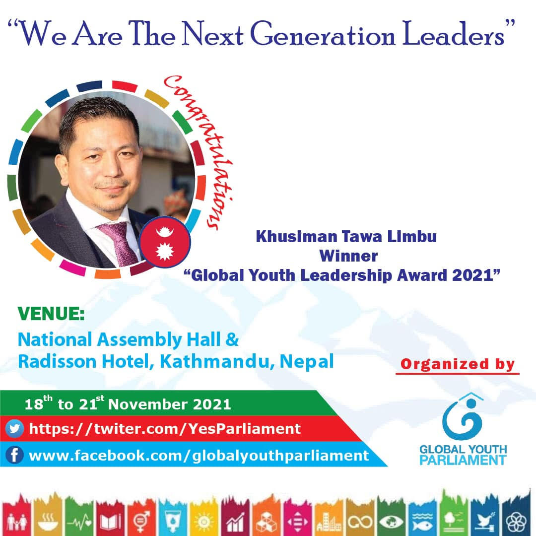 लण्डन – गैर-आवासीय नेपाली संघ (एनआरएनए) यूकेका महासचिव खुसी लिम्बु यस वर्षको ग्लोबल युथ लिडरशिप अवार्डको विजेता बनेका छन् । ग्लोबल युथ पार्लियामेण्ट संस्थाद्वारा वार्षिक रुपमा वितरण गरिने उक्त पुरस्कार युवाहरुको नेतृत्व, सशक्तिकरण र उनीहरुको ऊर्जालाई रूपान्तरण गर्नेहरुलाई दिइने गरिन्छ । बिजेता खुसी लिम्बु सन् २००४ देखि सामाजिक कार्यमा लाग्नुका साथै विभिन्न संघसंस्था तथा अभियानहरुमा आबद्ध छन् । विशेष गरी, उनले ब्रिटिश नेशनालिटी (हङकङ) ऐन को कार्यान्वयनको लागि सन् २००४ देखि २००८ मा हङकङका १० हजार भन्दा बढी ब्रिटिश नेशनाल ओभरसज (बीएनओ) अनागरिकहरूलाई पूर्ण बेलायती नागरिकको रुपमा दर्ता गर्नको लागि अभियानको नेतृत्व गरेका थिए । स्मरण रहोस् बेलायतले सन् १९९७ मा आफ्नो उपनिवेश हङकङ छोडेपछि त्यहाँस्थित अल्पसंख्यक नेपालीहरु राज्यविहीन भएका थिए।