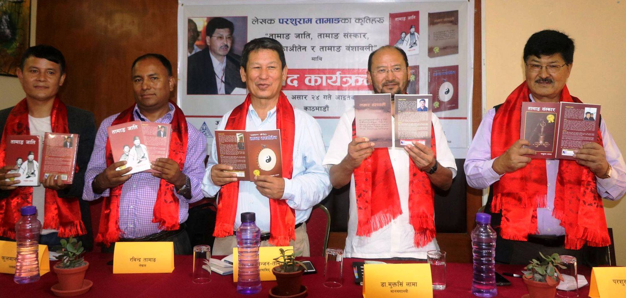 काठमाडौं । संयुक्त राष्ट्र संघ आदिबासी स्थायी मंचका पुर्व सदस्य परशुराम तामाङ एकसाथ चार पुस्तक सहित आएका छन् । विभिन्न कालखण्डमा छापिएका चार पुराना पुस्तकहरु केही परिमार्जन सहित प्रकाशित गरिएको हो । सैलुङ बुक्सले छापेको पुस्तकहरु ‘तामाङ जाति’, ‘तामाङ संस्कार’, ‘ताम्बा काअीतेन’ र ‘तामाङ वंशावली’ को हालै राजधानीमा भाषाविद अमृत योञ्जन, मानवशास्त्री डा. मुक्तसिंह लामा, संस्कृतिविद एवं लेखक रविन्द्र ग्याबा तामाङ र कवि एवं संचारकर्मी फूलमान वलले लोकार्पण गरे ।