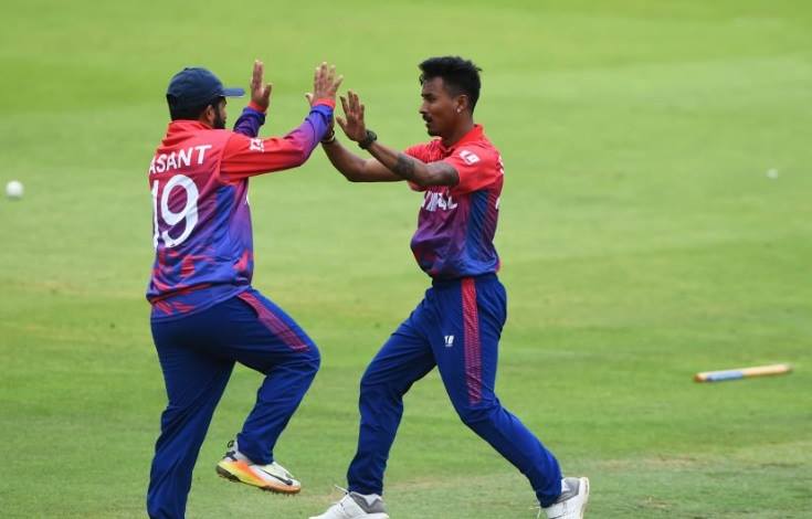 सुवास खकुरेल १९, दीपेन्द्रसिंह ऐरी १९, अरिफ शेख १६, उपकप्तान ज्ञानेन्द्र मल्ल १३, सन्दीप लामिछाने आठ, अनिलकुमार साह चार, ललित भण्डारी चार, रोहितकुमार पौडेल छ तथा वसन्त रेग्मीले एक रनमात्र जोडे ।