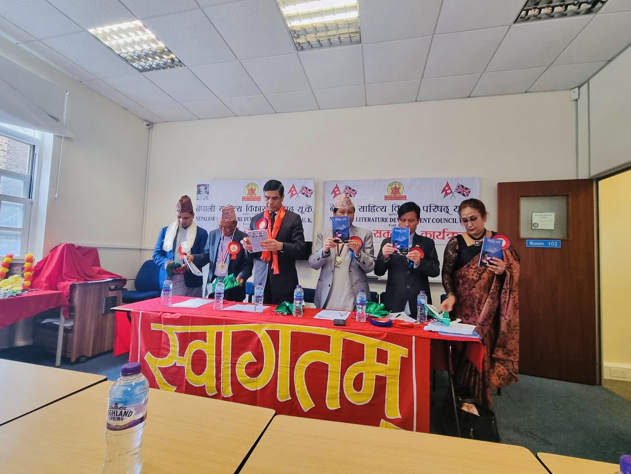 कार्यक्रममा प्रमुख अतिथि परिषद्का संरक्षक राजदूत आचार्यले हाल बेलायत भ्रमणमा रहेका नेपालका गीतकार, सङ्गीतकार तथा गायक हमाल र कोसेली नेपाली सांस्कृतिक परिवार यूकेकी नवनिर्वाचित अध्यक्ष रुवी थापालाई खादा ओढाइ सम्मान गरे ।