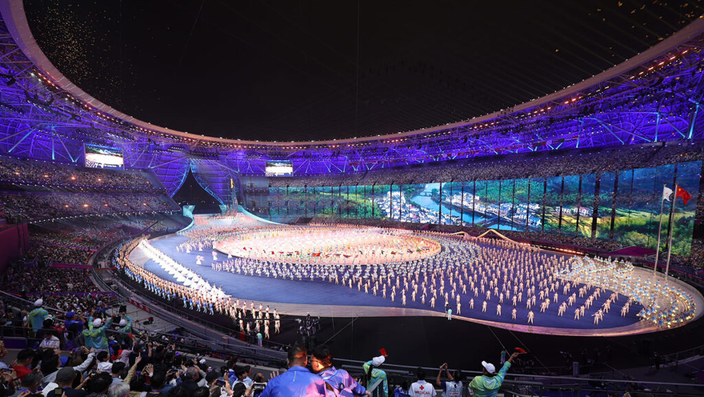 सिरियाका राष्ट्रपति बसर अल असद र अन्य नेताहरूको उपस्थितिमा सीले ८० हजार दर्शक क्षमताको हाङझोउ ओलम्पिक रङ्गशालामा औपचारिक रूपमा खेलको उद्घाटन गरेका छन् । चिनियाँ झण्डा फहराइरहेका दर्शकले सीसहित कार्यक्रममा सहभागी पाहुनालाई भव्य स्वागत गरेका छन् ।