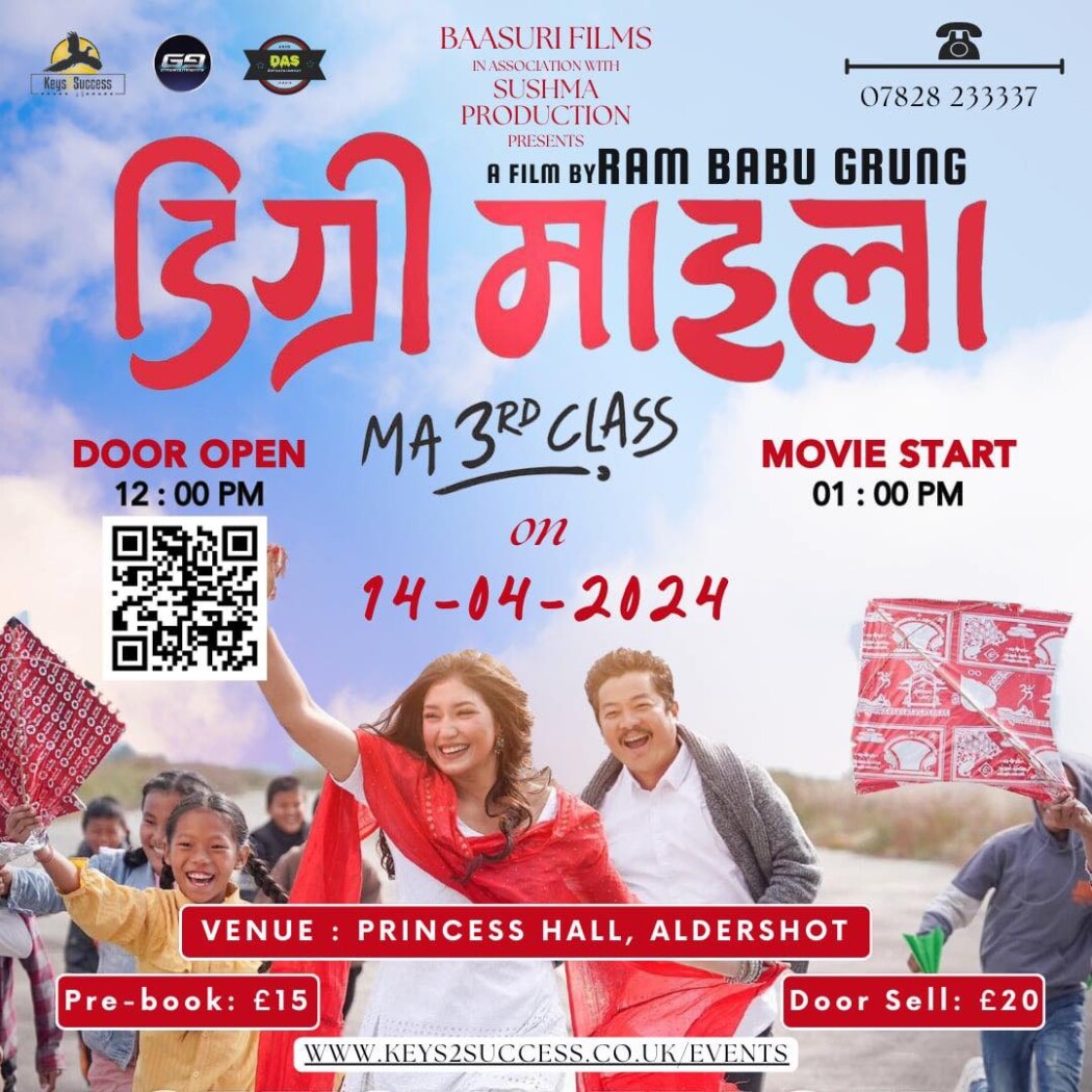 ‘कबड्डी’ फेम्ड निर्देशक रामबाबु गुरुङको नयाँ चलचित्र ‘डिग्री माइला: म थर्ड क्लास’ बेलायतबासी नेपालीले बेलायतको प्रिन्सेस हलमा नयाँ बर्षको उपलक्ष्यमा हेर्न पाउने भएका छन् । यो चलचित्र नेपालमा भने बैशाख १ गते अर्थात अप्रिल १३ गते नै रिलिज हुँदै छ ।