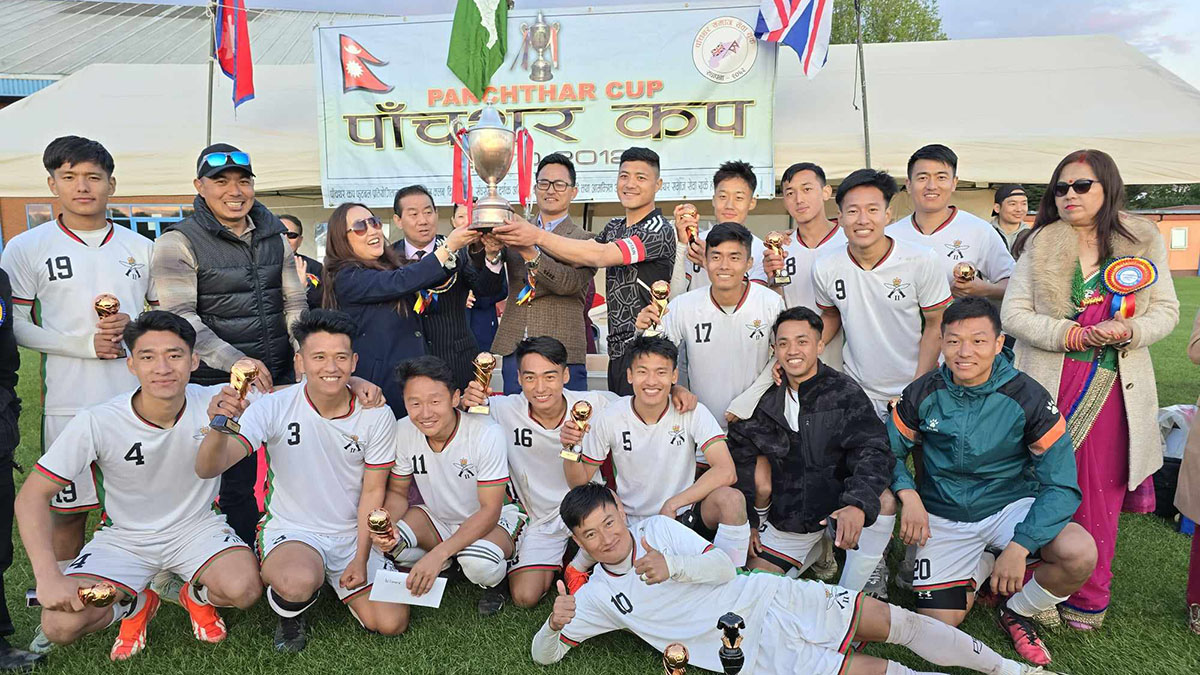 पाँचथर समाज सेवा युकेद्वारा शनिबार आयोजित फुटबल प्रतियोगिताको फाइनल खेलमा एफसी तोङ्बा टिमलाई ०-२ गोलले पराजित गर्दै टु-आरजीआरले कप जितेको हो । मुख्य टिममा फार्नबोरो इलाइट टिमबाट सौगत गुरुङले अत्यधिक स्कोर गरे भने टु-आरजीआर टिमबाट रोशन थाम्सुहाङ उत्कृष्ट खेलाडी भए ।