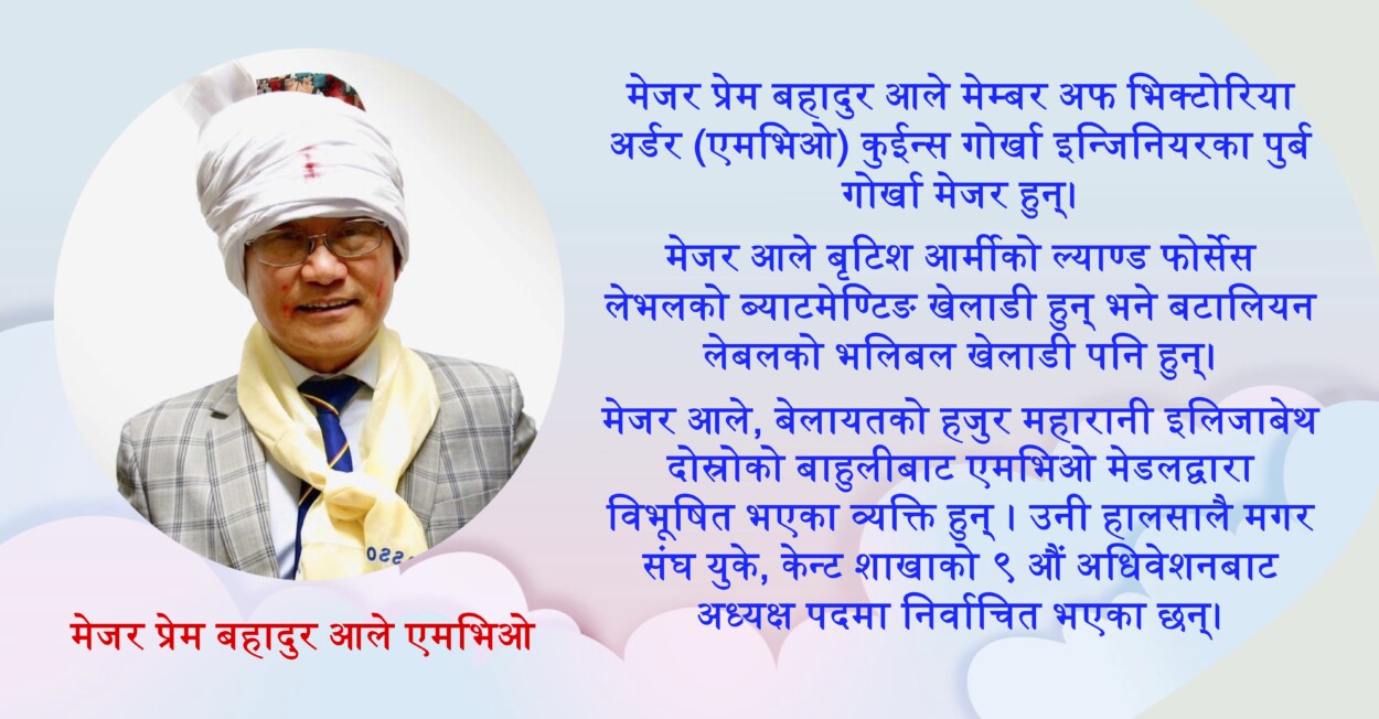 मेजर प्रेम बहादुर आले मेम्बर अफ भिक्टोरिया अर्डर (एमभिओ) कुईन्स गोर्खा इन्जिनियरका पुर्ब गोर्खा मेजर हुन्। मेजर आले बृटिश आर्मीको ल्याण्ड फोर्सेस लेभलको ब्याटमेण्टिङ खेलाडी हुन् भने बटालियन लेबलको भलिबल खेलाडी पनि हुन्। मेजर आले, बेलायतको स्वर्गीय हजुर महारानी इलिजाबेथ दोस्रोको बाहुलीबाट एमभिओ मेडलद्वारा विभूषित भएका व्यक्ति हुन् । उनी हालसालै मगर संघ युके, केन्ट शाखाको ९ औं अधिवेशनबाट अध्यक्ष पदमा निर्वाचित भएका छन्।