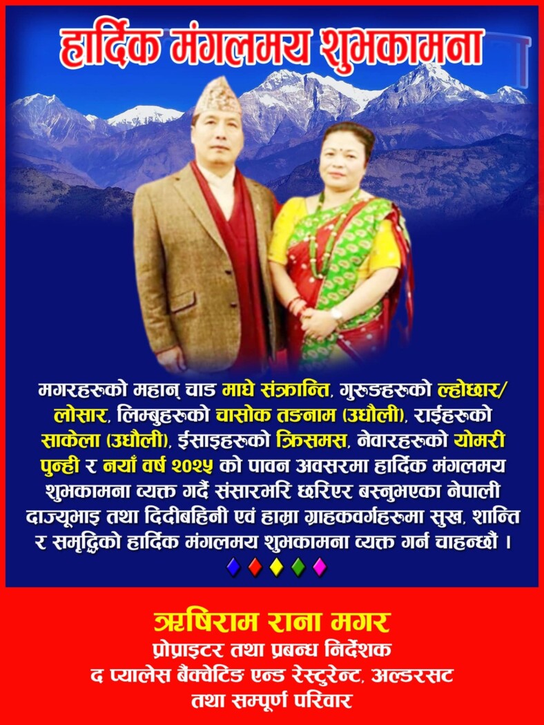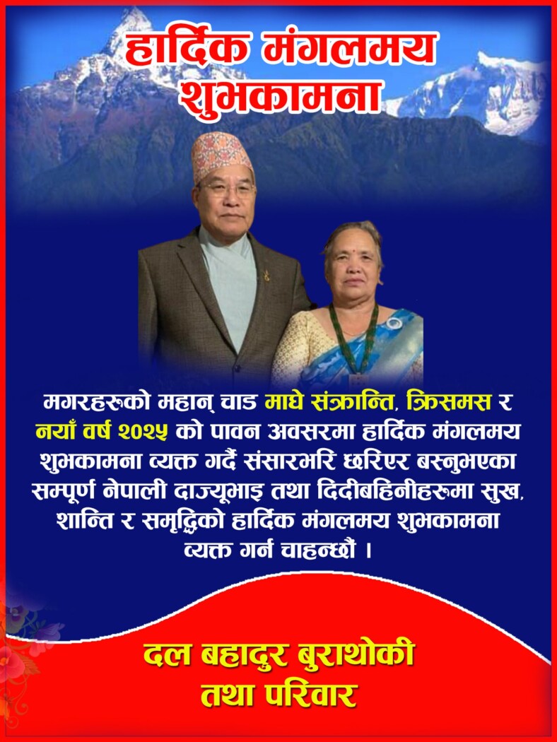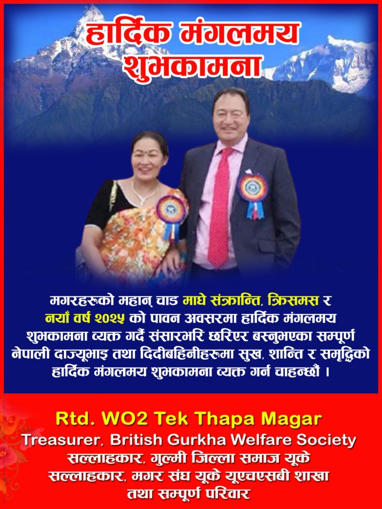 हार्दिक शुभकामना: माघे संक्रान्ति, लोहछार/लोहसार, चासोक तङनाम (उघौलि), साकेला (उघौली) छारमेङ, मैप्रु नाकुमा, योमरी पुन्ही, क्रिसमस र नयाँ बर्ष २०२५ को