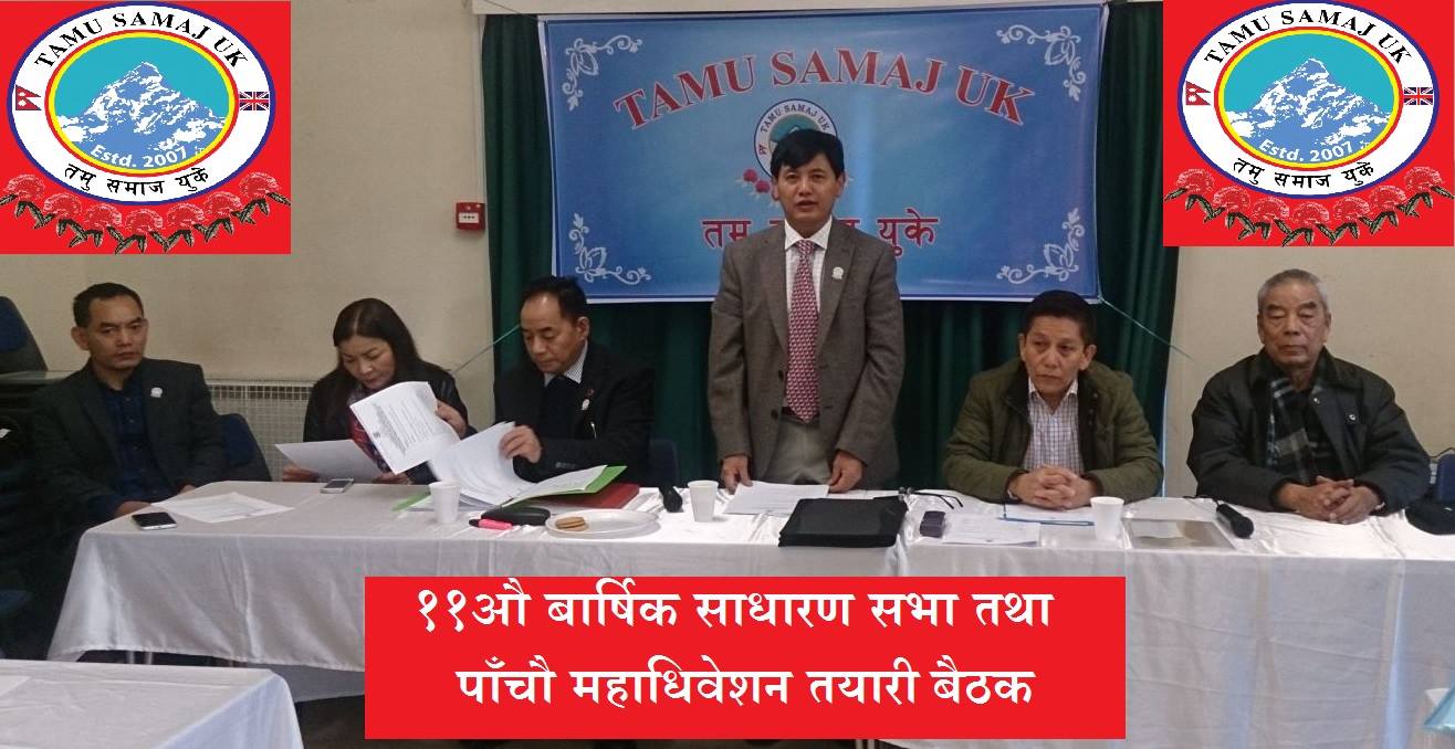 लण्डन । तमु समाज युकेले ११औं वार्षिक साधारणसभा तथा पाँचौ महाधिवेसनको तयारी गरेको छ । कम्युनिटी सेन्टर ६ अप्रिल २०१८ का दिन समाजका अध्यक्ष अर्जुन कुमार गुरुङको अध्यक्षतामा बसेको बैठकले साधारणसभा तथा महाधिवेसनको तयारी गरेको हो ।