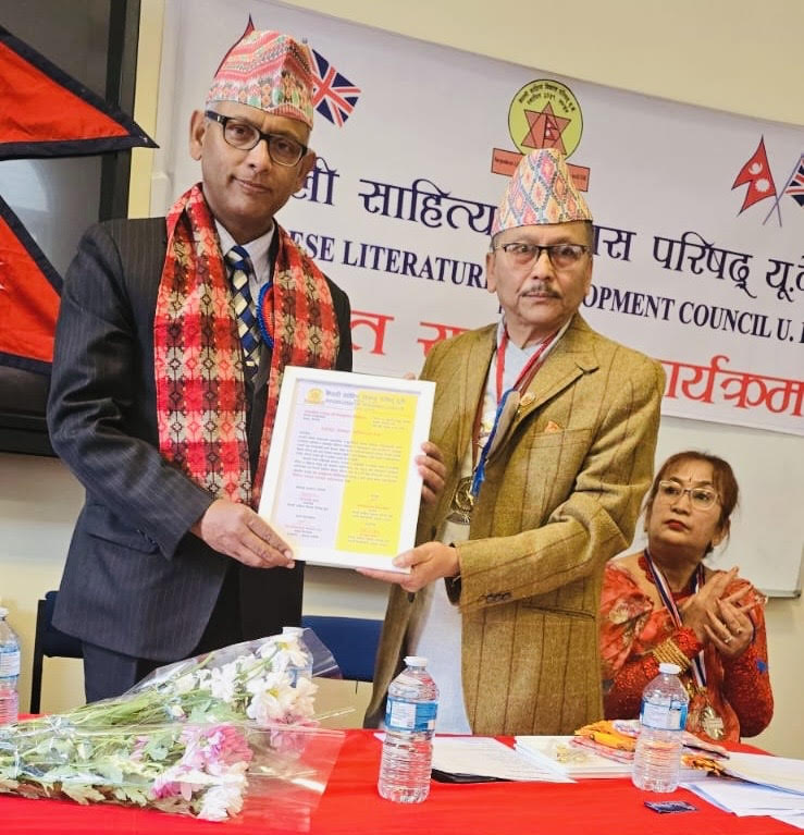 उक्त स्वागत सम्मान समारोहलाई संबोधन गर्नुहुँदै प्रमुख अतिथि परिषद्का पदेन संरक्षक नेपाली राजदूत चन्द्रकुमार घिमिरेले विदेशमा नेपाली पहिचान जिवन्त राख्न नेपाली भाषा साहित्य संस्कृति जस्ता मूलभुत कुराहरूलाई संरक्षण र संबर्धन गर्न नेपाली साहित्य विकास परिषद् यूके. ले निरन्तर गरेका गतिविधिहरू अत्यन्त सराहनीय छन् भन्नु भयो । समारोहमा परिषदको संरक्षकत्व ग्रहण गर्दै राजदूत घिमिरेले नेपाल र नेपालीको पहिचान समृद्धि हुने परिषद्का यस्ता सिर्जनात्मक कार्यहरूमा राजदूतावासको सहयोग र सहभागिता निरन्तर रहिरहने विस्वास व्यक्त गर्नु भयो । राजदूत घिमिरेले सबै सर्जकहरूमा आउदै गरेको नेपाली नया बर्ष २०८२ को उपलक्षमा नेपाली दूतावास र आफ्नो तर्फबाट शुभकामना व्यक्त गर्नुभयो ।