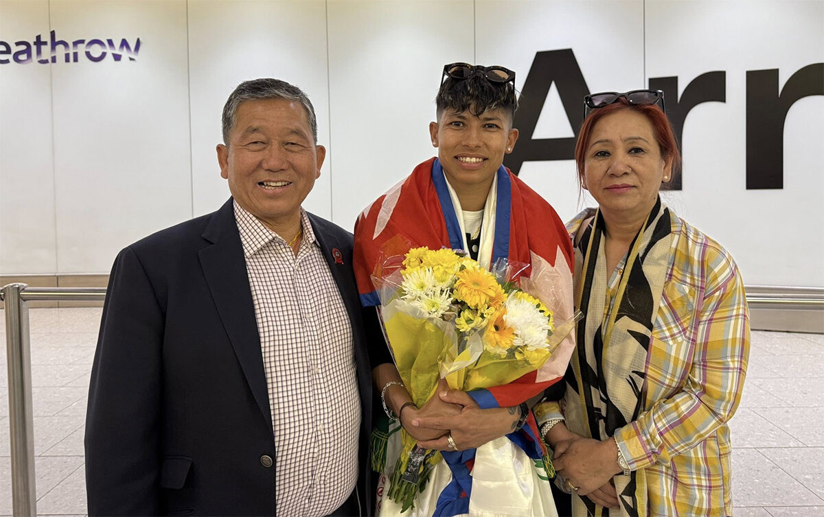 एयरपोर्टमा उनलाई गोर्खा कप आयोजक तमू धीं यूकेका अध्यक्ष जुमकाजी गुरुङ, उपाध्यक्ष कमल गुरुङ, सचिव विमल गुरुङ, खेल सचिव दीपक घले, पूर्वखेल सचिव देव घले, तमूधीं यूके आमा समूह अध्यक्ष कमलादेवी गुरुङ, तमुधीं यूके सल्लाहकार तथा एनआरएनए आईसीसी सदस्य दिलरास गुरुङ, सहारा यूके अध्यक्ष कृष्ण गुरुङ, निवर्तमान अध्यक्ष ले.रि कुसाङ गुरुङ, सदस्य अजयजङ थापा, साम्बाका नातेदार नारायण भण्डारीलगायतले स्वागत गरेका थिए ।
