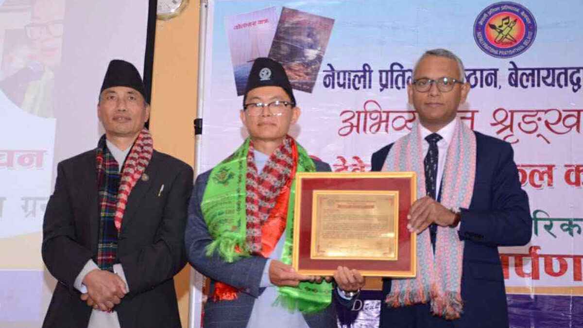 यसैगरी सभापति टंक वनेमले कवि देवेन्द्र खेरेसको सृजनात्मक यात्राको संक्षिप्त परिचय दिँदै प्रवास जीवन भोगाईका पाटाहरूलाई कवितामा उतारेको बताए ।