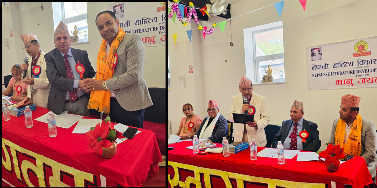 लन्डन १४ जुलाई । नेपाली साहित्य विकास परिषद् युकेले २१२औँ भानु जयन्ती विभिन्न कार्यक्रम गरी मनाएको छ । अल्डरसटस्थित शिव कल्चरल एन्ड कम्युनिटी सेन्टरमा १३ जुलाई २०२५ मा सम्मान, कविता वाचन र प्रवचन लगायतका विविध साहित्यिक कार्यक्रम गरी भानुजयन्ती मनाइएको हो । प्रारम्भमा आदिकवि भानुभक्त आचार्यको तस्बिरमा माल्यार्पण गरिएको थियो ।