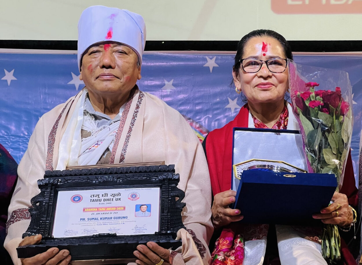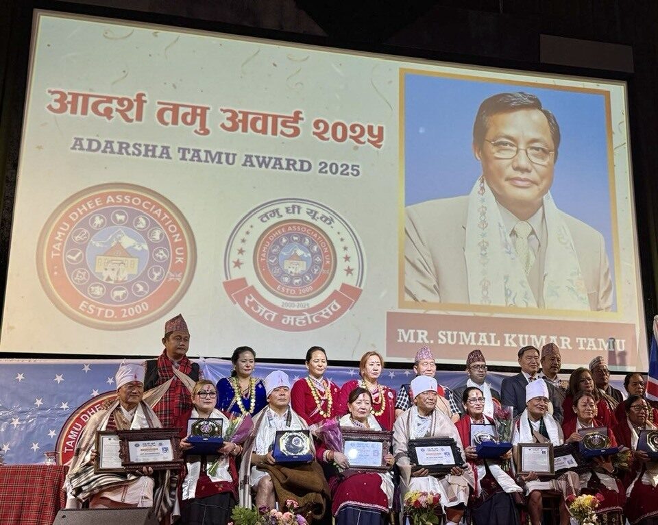 सम्मानित सुमलकुमारले आयोजक तमुधीं यूकेलाई धन्यवाद दिएका छन् । ‘तमुधिं यूकेको आजीवन रात्रिभोजको अवसरमा मलाई आदर्श तमु अवार्डबाट विभूषित गर्यो । जीवनको यस मोडमा मलाई यस अवार्डबाट विभूषित गरेकोमा तमुधिं यूकेका अध्यक्ष, सम्पूर्ण कार्यकारी समिति, पूर्वअध्यक्षहरू, सल्लाहकारहरू, आजीवन सदस्यहरू र ट्रस्टीहरूमा म र मेरी श्रीमती सारादेवी गुरूङ हार्दिक आभार र धन्यवाद व्यक्त गक्दछौं,’ उनले फेसबुकमा लेखेका छन् ।