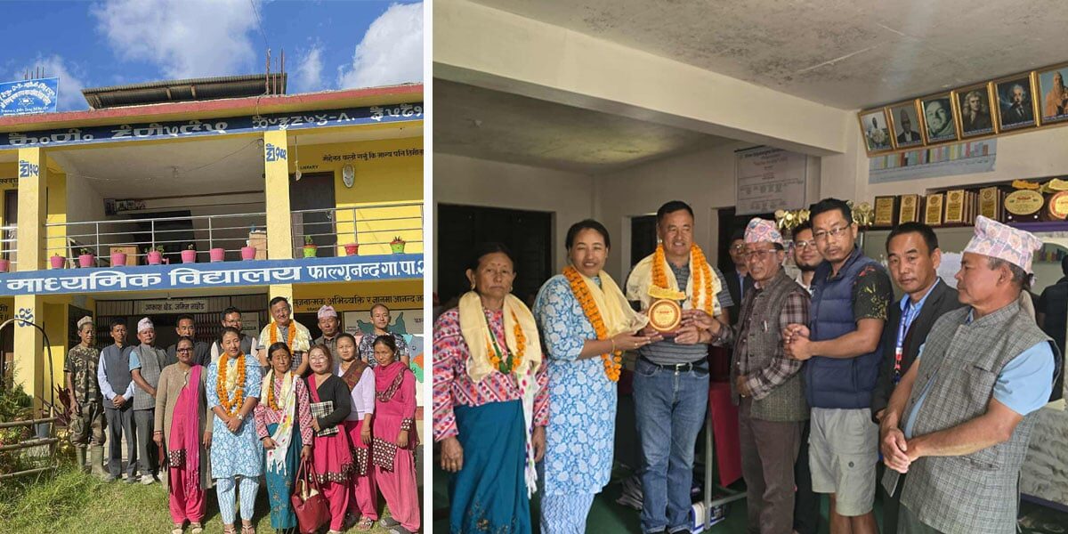 कार्यक्रमका प्रमुख अथिति फाल्गुनन्द-२ का वडाध्यक्ष सन्तोषकुमार नेम्बाङ सत्यहाङ्मा माविका प्रधानाध्यापक अमिता सुब्बालगायतले नेम्बाङ दम्पतीलाई खादा, फूलमाला लगाइ सम्मानपत्रसहित सम्मान गरे ।