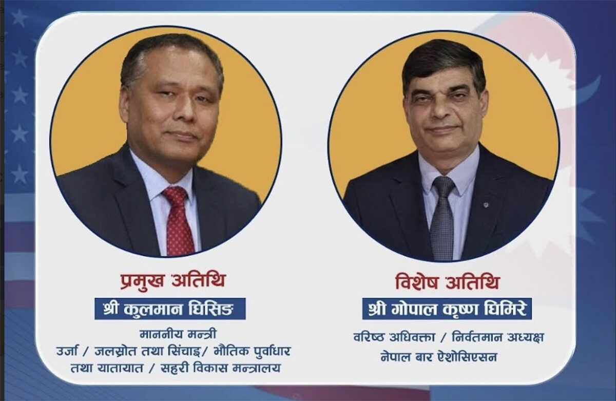 अन्तरक्रिया कार्यक्रममा प्रमुख अतिथिका रुपमा ऊर्जा, जलस्रोत तथा सिंचाइ, भौतिक पूर्वाधार तथा यातायात, तथा सहरी विकास मन्त्रालयका मन्त्री कुलमान घिसिङ र विशेष अतिथिमा वरिष्ठ अधिवक्ता तथा नेपाल बार एसोसिएसनका निवर्तमान अध्यक्ष गोपालकृष्ण घिमिरे रहने समितिले जनाएको छ ।