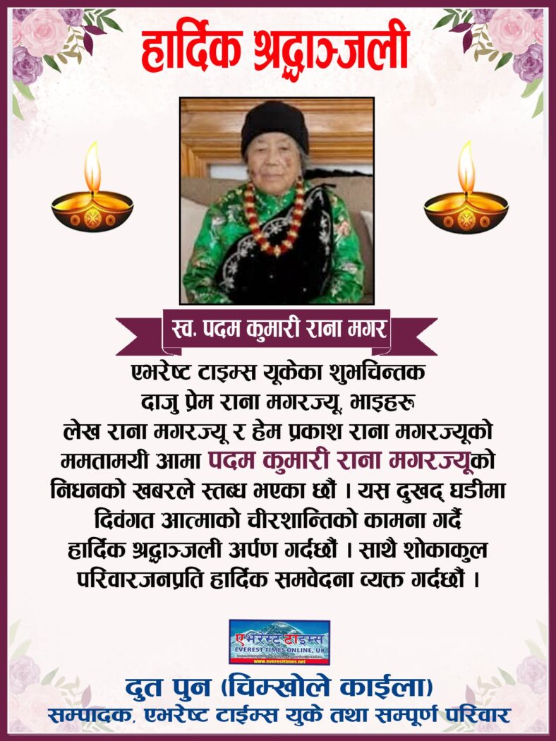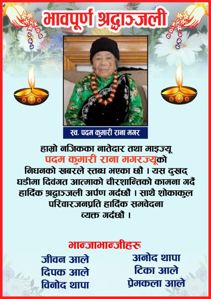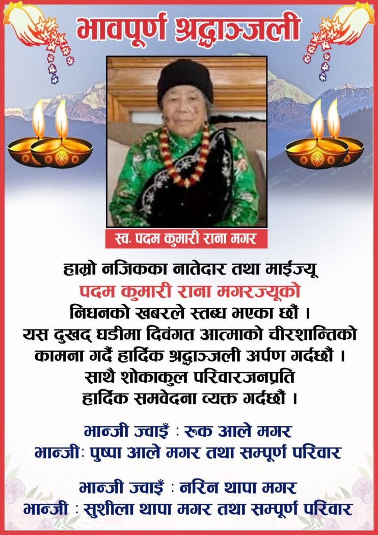 भावपूर्ण श्रद्धान्जली: पदम कुमारी राना मगर