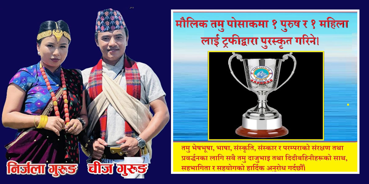 तमु भेषभूषा, भाषा, संस्कृति, संस्कार र परम्पराको संरक्षण तथा प्रवर्द्धन गर्ने उद्देश्यले यस कार्यक्रममा “उत्कृष्ट मौलिक तमु पोसाक”मा सहभागी हुने महानुभावहरूमध्येबाट: