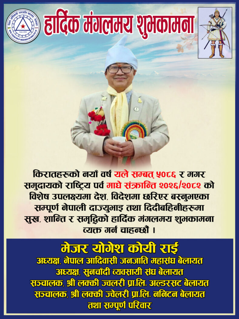 हार्दिक मंगलमय शुभकामना: मेजर योगेश कोयी राई