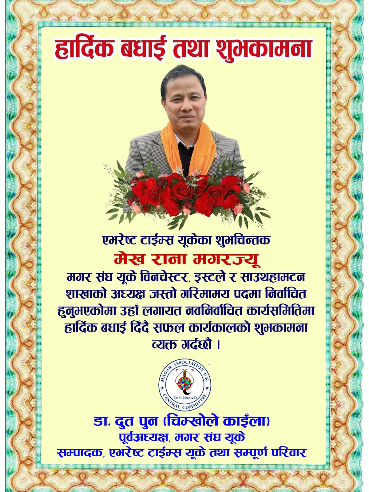 हार्दिक बधाई तथा शुभकामना : मेख राना मगर