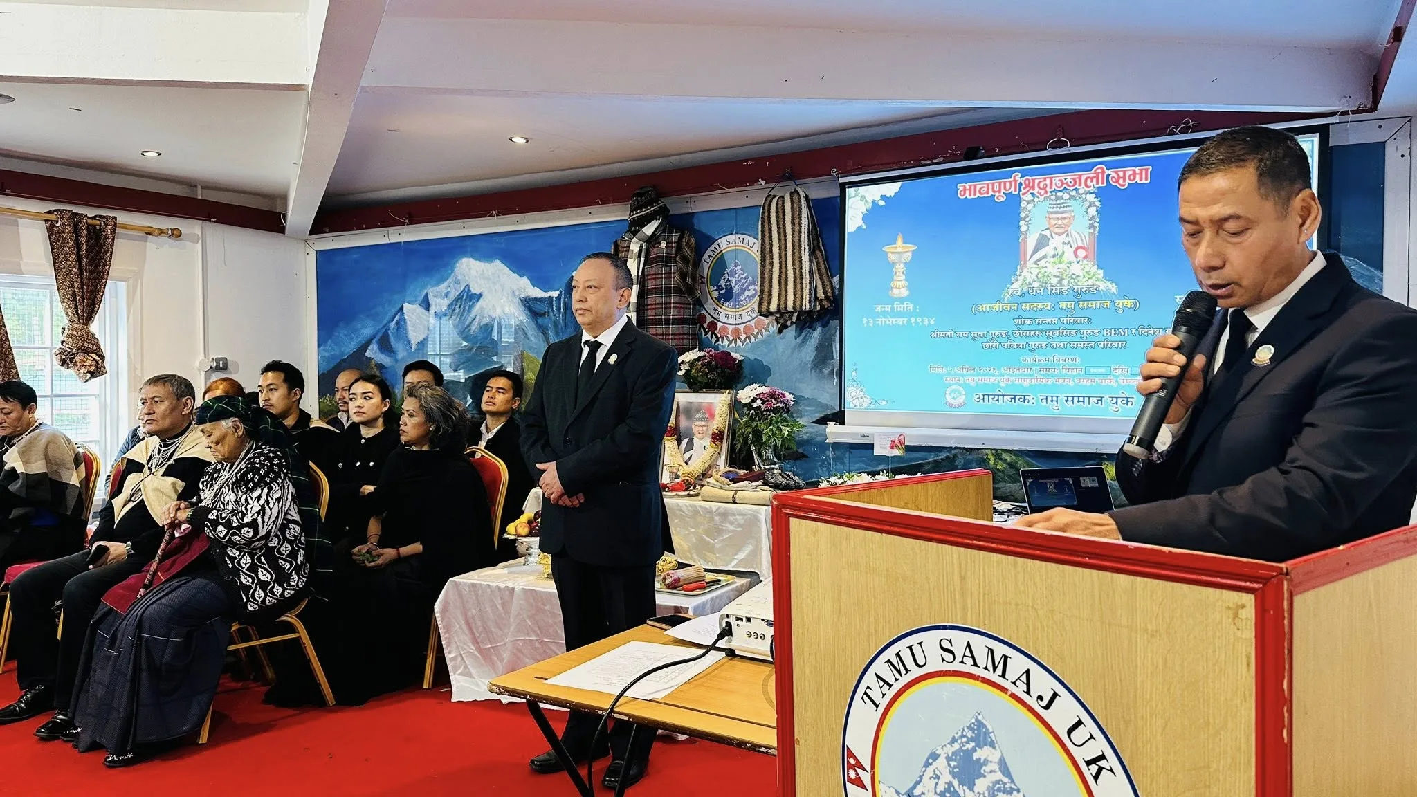 लन्डन । तमु समाज यूकेका ज्येष्ठ सदस्य तथा अभिभावक स्व.धन सिङ गुरुङको स्मृतिमा आयोजित “भावपूर्ण श्रद्धाञ्जली सभा” ५ अप्रिल २०२६ आइतबार वेम्बलीस्थित समाजको सामुदायिक भवनमा सम्पन्न भएको छ । ९२ वर्षको उमेरमा गत २२ मार्चमा निधन भएका गुरुङप्रति श्रद्धाञ्जली अर्पण गर्न आयोजित कार्यक्रममा उल्लेख्य जनसहभागिता रहेको थियो।