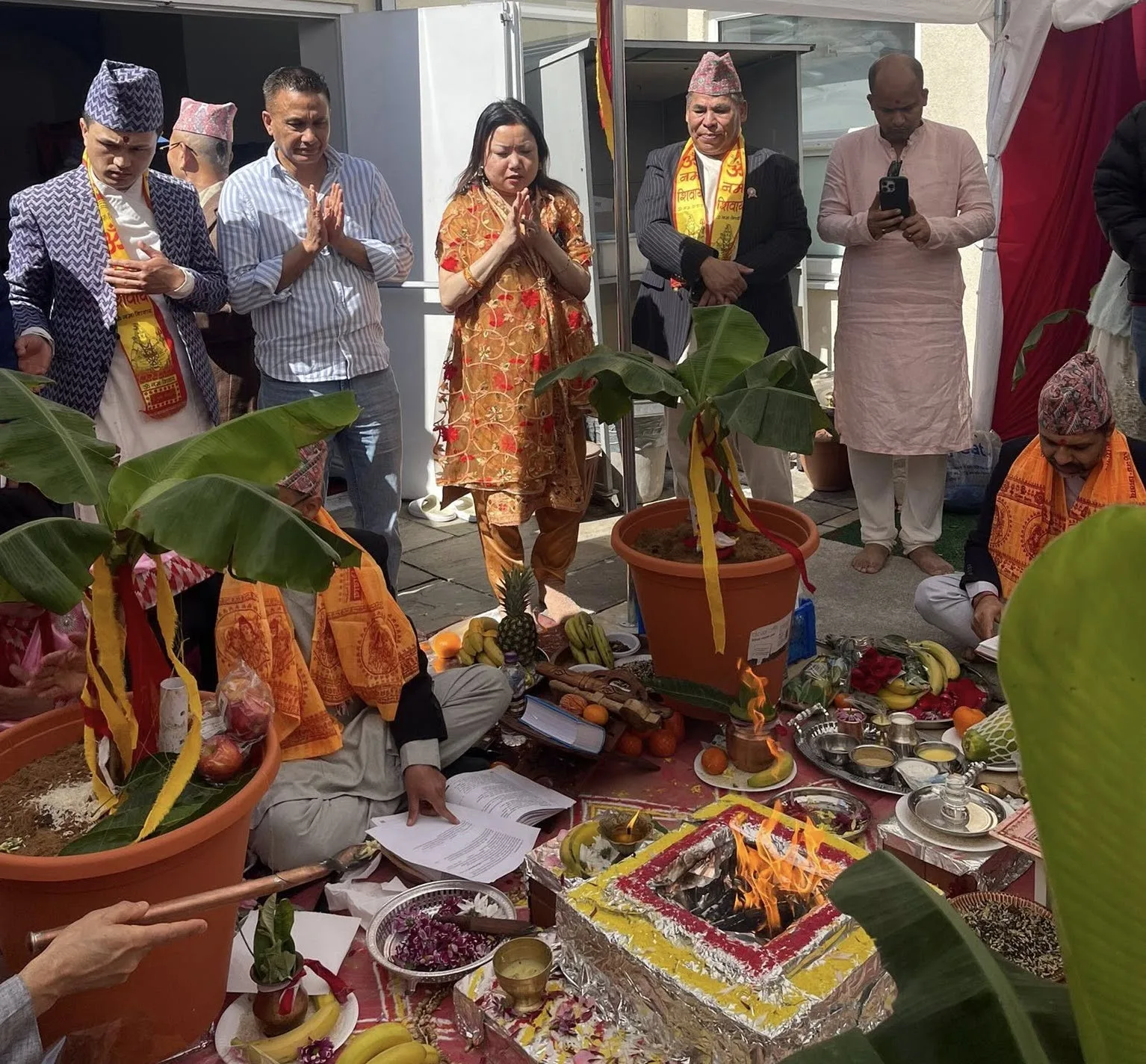 विश्व हिन्दु महासंघ बेलायत शाखाका अध्यक्ष श्रीमती राजु मल्ल, समाजसेवी श्री महन्त श्रेष्ठ तथा अन्य पदाधिकारीहरू यजमान रहनुभएको उक्त यज्ञको धार्मिक विधि विधानअनुसारको सञ्चालन पण्डित गुरु श्री दुर्गा प्रसाद पोखरेल लगायतका अन्य गुरुहरूबाट गरिएको थियो। यज्ञ प्रारम्भ हुनुभन्दा अगाडि विश्व हिन्दु महासंघका अन्तर्राष्ट्रिय उपाध्यक्ष श्री खगेन्द्र पाठकज्यूले स्वागत मन्तव्यमार्फत उपस्थित सम्पूर्ण पाहुना तथा अतिथिहरूलाई स्वागत गर्नुभएको थियो।