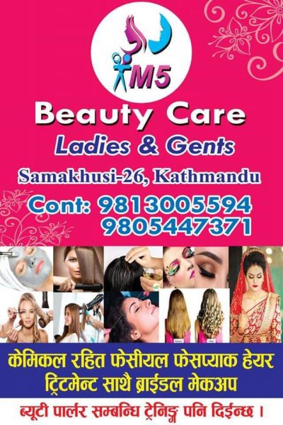 अबको केही दिनसम्म विशेष छुटमा सेवा दिइने उनको भनाइ छ । उनका अनुसार टीएम फाइभ ब्यूटी केयरमा केमिकलरहित फेसियल फेसप्याक, हेयर ट्रिटमेन्ट साथै ब्राइडल मेकअपको सुविधा लिन सकिने छ । पार्लरमा कोरियन सामाग्री प्रयोग गरिने जनाइएको छ ।
