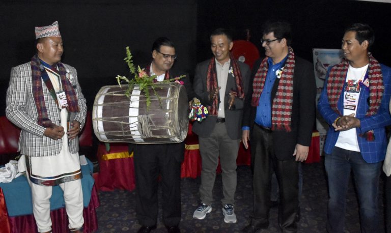 काठमाडौं । सभामुख कृष्णबहादुर महराले लिम्बू भाषाको चलचित्र ‘के साङ्ला’को विशेष प्रदर्शनीको उद्घाटन तथा अवलोकन गरेका छन् । सभामुख महराले चलचित्र प्रदर्शनीअघि लिम्बू समुदायको महत्वपूर्ण बाजाको रुपमा रहेको च्याब्रुङलाई के साङ्लाले बजाएर औपचारिक कार्यक्रमको उद्घाटन