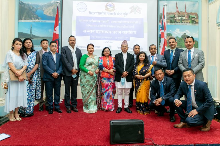 लन्डन जुलाई १९ । कोरोनाको दोस्रो लहरका बेला नेपालमा अक्सिजन कन्सन्ट्रेटर पठाउन आर्थिक सहयोग गर्ने बेलायतबाट सम्पूर्णदातालाई सम्मान गरिएको छ । नेपाली दूतावास र एनआरएनए यूकले शनिबार लन्डनस्थित नेपाली दूतावास भवनमा आयोजित कार्यक्रममा आर्थिक सहयोग