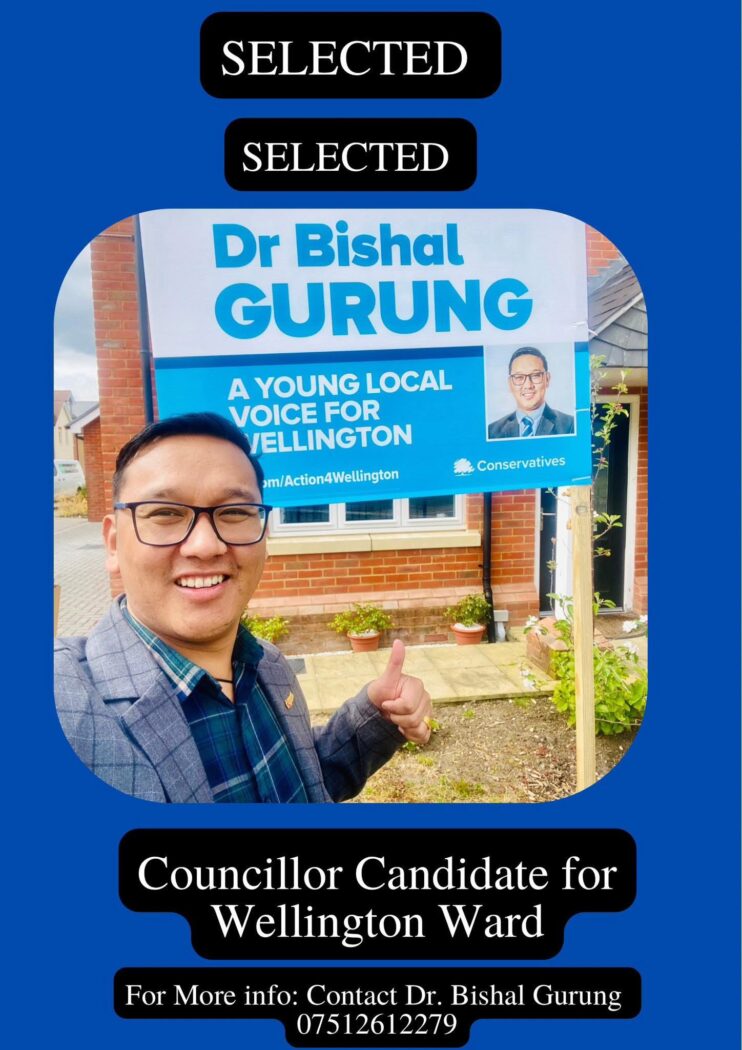 अल्डर्सट, बेलायत। – बेलायतमा रहेका नेपाली समुदायका परिचित अनुहार, समाजसेवी तथा सक्रिय अभियन्ता डा. बिशाल गुरुङ अब कन्जर्भेटिभ पार्टी (Conservative Party) तर्फबाट वेल्लिन्टन वार्ड (Wellington Ward) का काउन्सिलर उम्मेदवार बनेका छन्। स्याङ्जा जिल्लामा जन्मिएर करिब